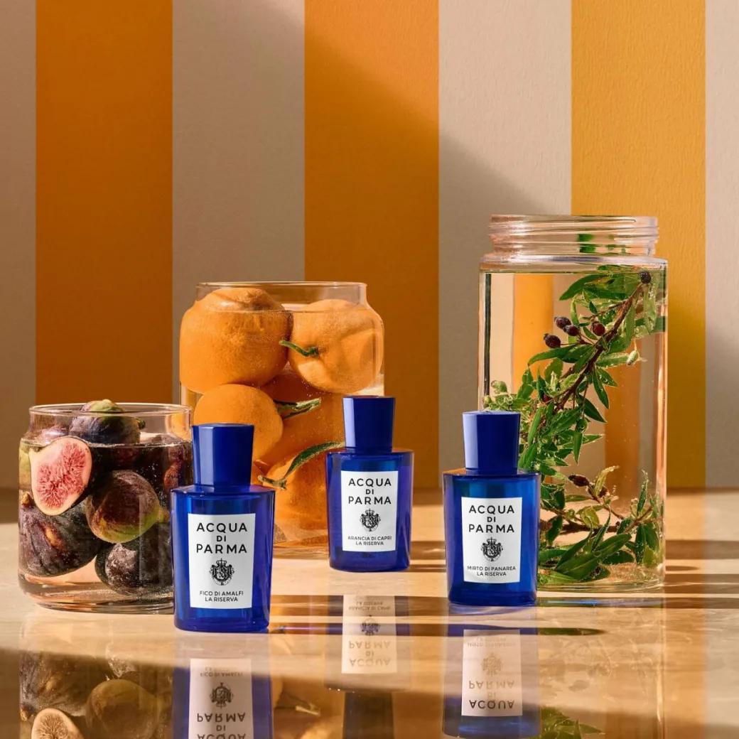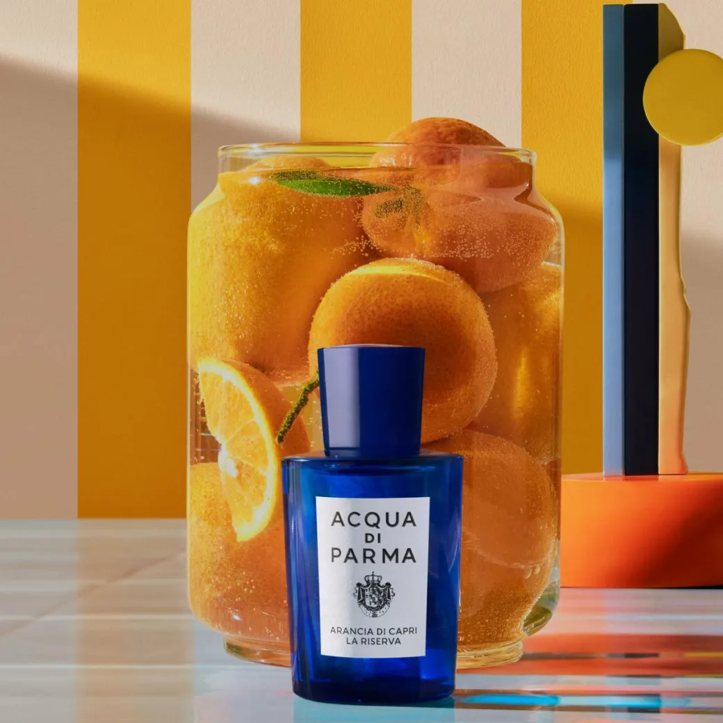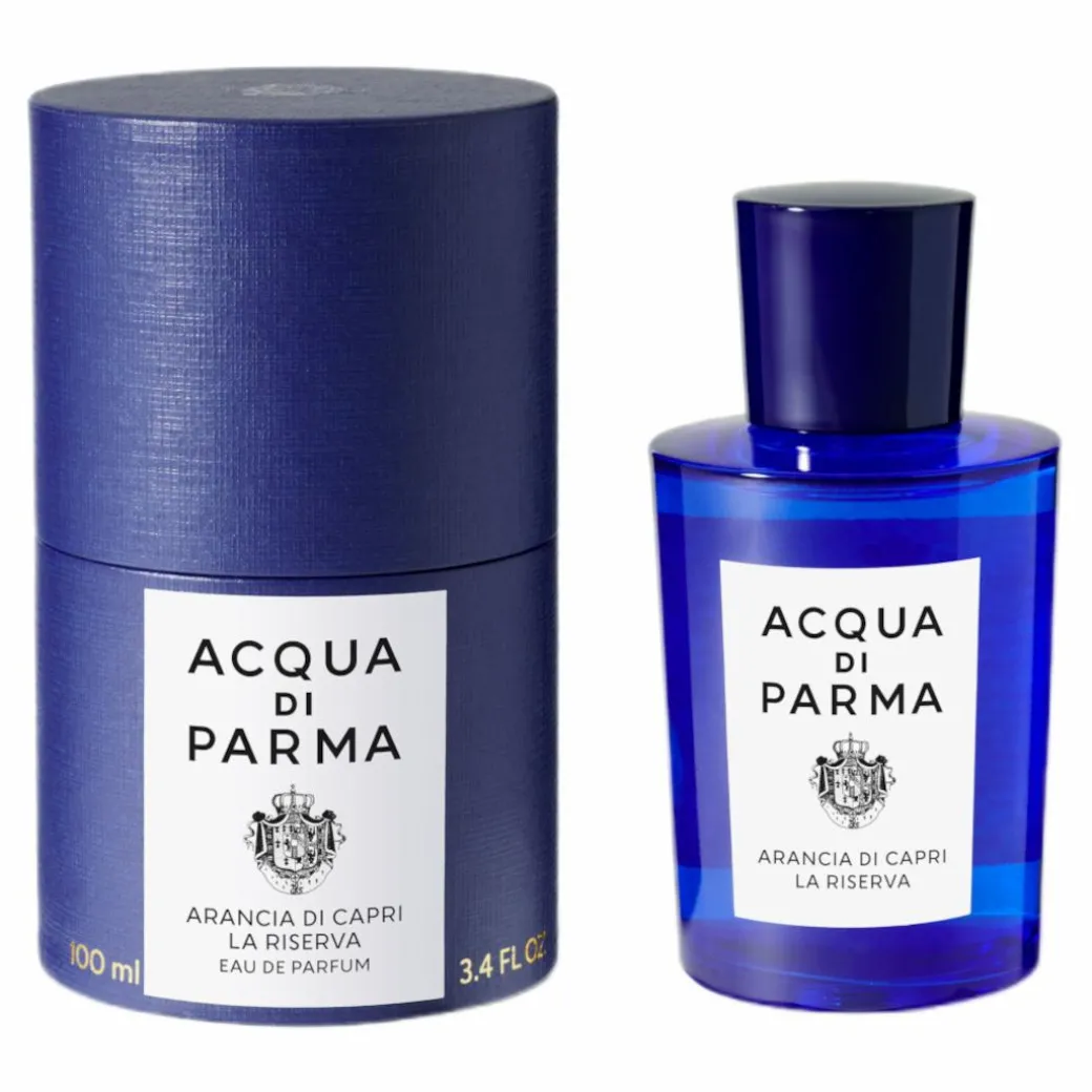 Acqua di Parma Blu Mediterraneo Arancia di Capri La Riserva Eau de Parfum Spray is an intense and multi-nuanced fragrance from a two-month maceration process, evoking the succulent sensation of a freshly hand-peeled ripe orange on a breezy morning with hints of wild rosemary.