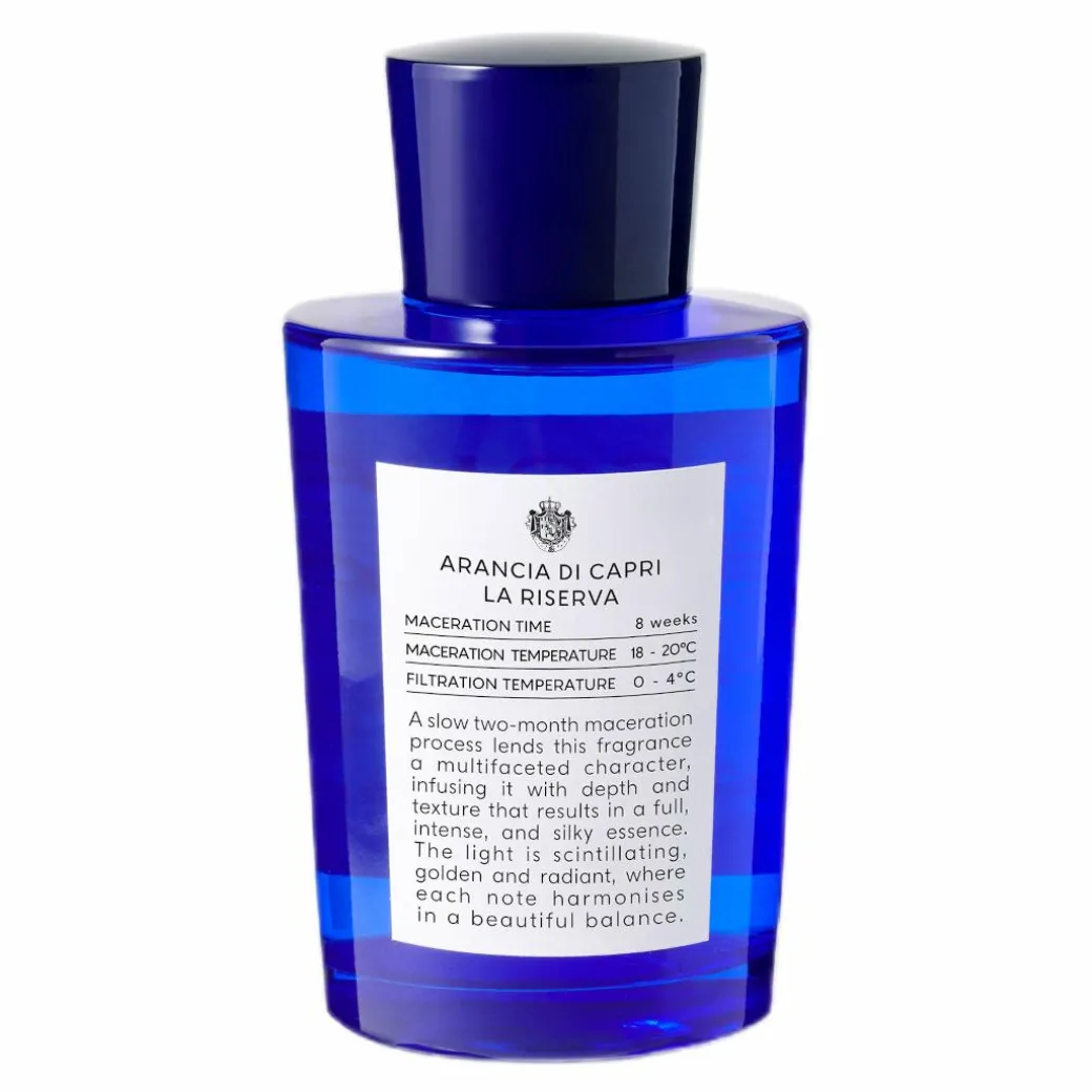 Arancia di Capri La Riserva features a cap and bottle in a new, more intense shade of blue, embodying the long-lasting sillage of the fragrance. The fragrance comes in an enlarged hatbox, complemented by a refreshed label with updated finishings.
