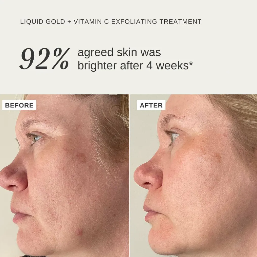What does it do?Liquid Gold Exfoliating Treatment with Vitamin C is a powerhouse duo that harnesses the exfoliating power of 5% Glycolic Acid and brightening effects of Vitamin C, enhanced by its unique low-pH delivery system and stabilised formulation.