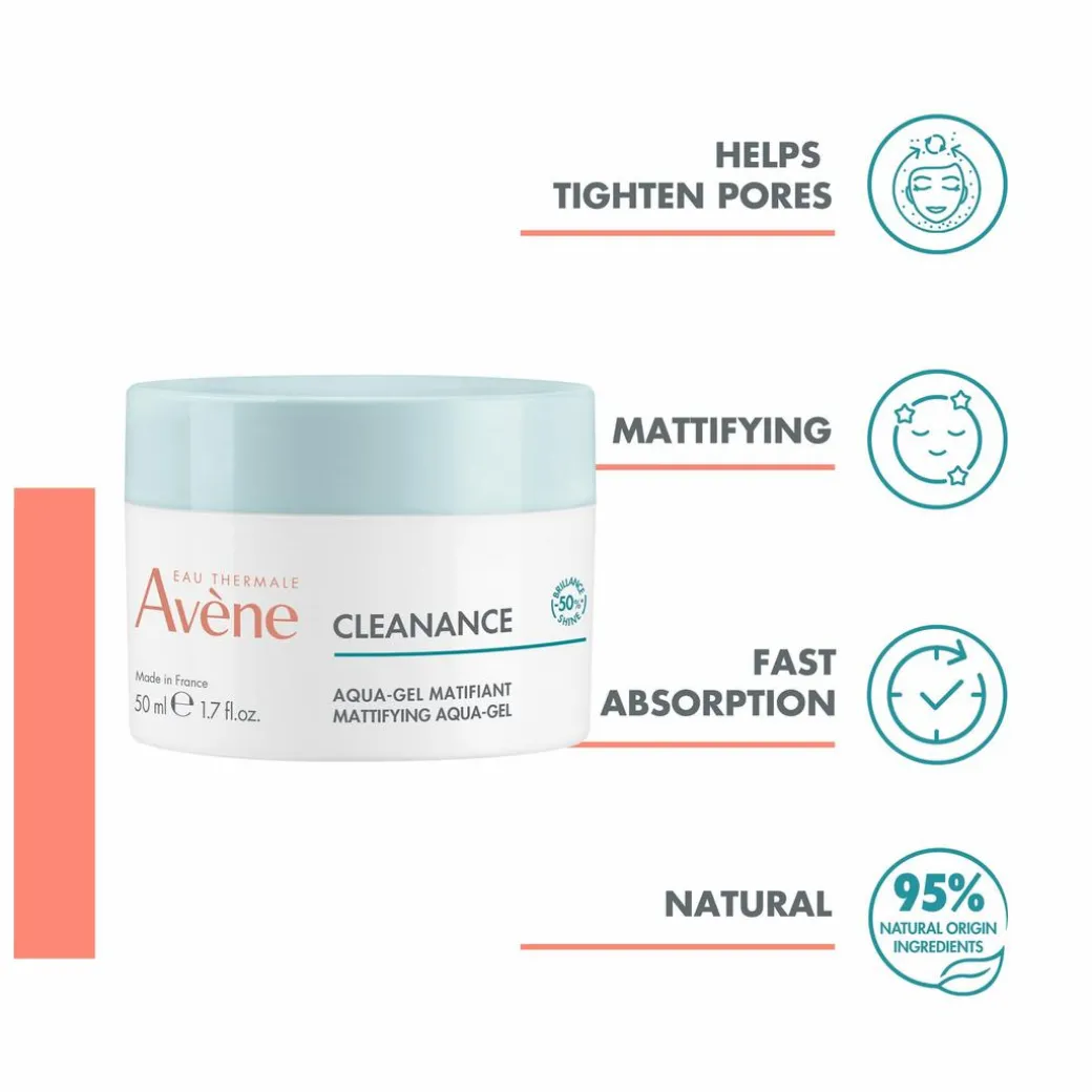 Cleanance Aqua Gel is a multi-benefit moisturiser for sensitive, oily skin with imperfections.Its Monolaurin enriched formula immediately reduces shine by 50%* without drying out the skin, thanks to soothing Avène Thermal Spring Water.