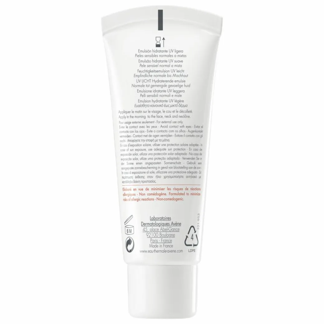 Avene Thermal Spring Water (Avene Aqua), Ethylhexyl Methoxycinnamate, Octocrylene, Bis-Ethylhexyloxyphenol Methoxyphenyl Triazine, Cyclomethicone, Aluminum Starch Octenylsuccinate, Polymethyl Methacrylate, Potassium Cetyl Phosphate, Benzoic Acid, Beta-Sitosterol, Caprylic / Capric Triglyceride, Carbomer, Chlorphenesin, Disodium Edta, Parfum, Glycerin, Glycine Soja, Hydrogenated Coco-Glycerides, Lecithin, Phenoxyethanol, Poloxamer 188, Sodium Chondroitin Sulfate, Sodium Hydroxide, Tocopheryl Glucoside, Xanthan Gum.
