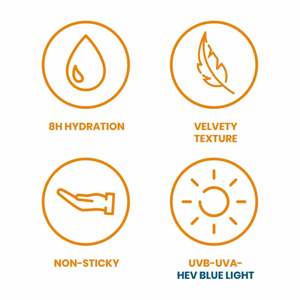 - Broad-spectrum sun protection against UVA, UVB and Blue Light (HEV).