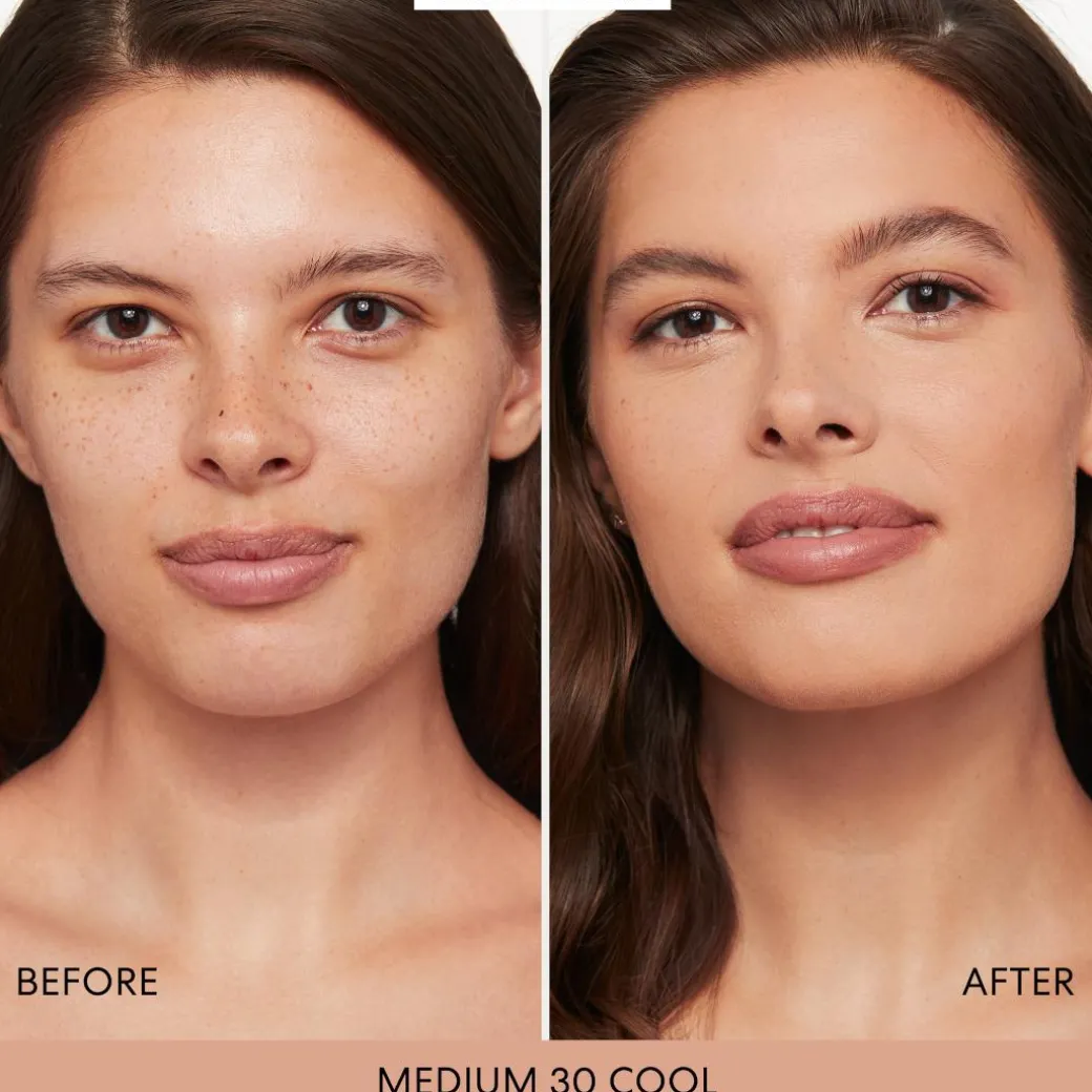 Medium 30 Cool: Synthetic Fluorphlogopite, Mica, Zinc Stearate, Silica, Calcium Carbonate, Diphenyl Dimethicone/Vinyl Diphenyl Dimethicone/Silsesquioxane Crosspolymer, Caprylic/Capric Triglyceride, Magnesium Myristate, Dimethicone, Sorbitan Sesquiisostearate, Helianthus Annuus (Sunflower) Seed Oil, Squalane, Butyrospermum Parkii (Shea) Butter, Ananas Sativus (Pineapple) Fruit Extract, Theobroma Cacao (Cocoa) Seed Butter, Glycyrrhiza Glabra (Licorice) Root Juice, Paeonia Albiflora Root Extract, Ethylhexylglycerin, Sorbic Acid, Methicone, Aluminum Hydroxide, Triethoxycaprylylsilane, Hydrogen Dimethicone, Tocopherol, Tetrahexyldecyl Ascorbate, Tocopheryl Acetate, Citric Acid. +/- (May Contain/Peut Contenir) Titanium Dioxide (Ci 77891), Iron Oxides (Ci 77491, Ci 77492, Ci 77499).