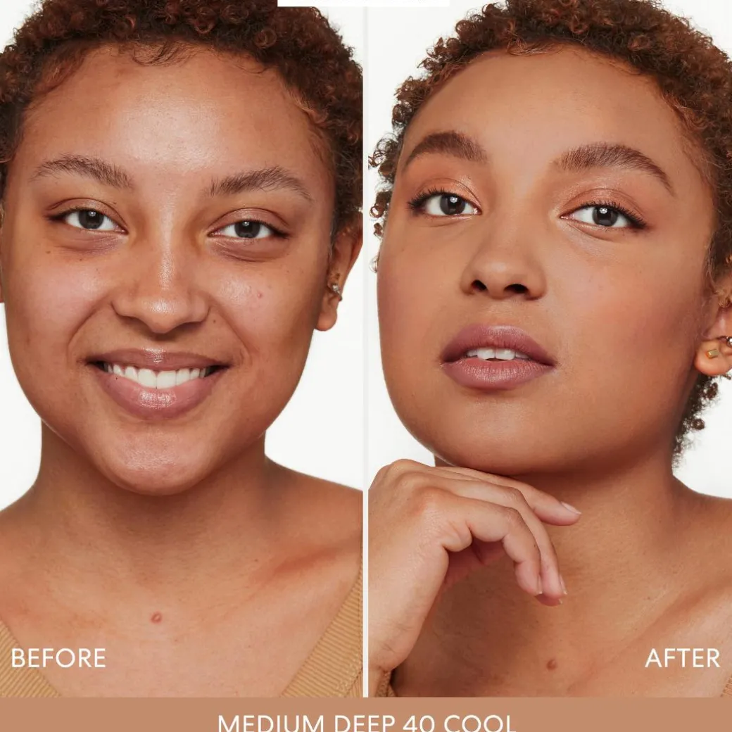 Medium Deep 40 Cool: Synthetic Fluorphlogopite, Mica, Zinc Stearate, Silica, Calcium Carbonate, Diphenyl Dimethicone/Vinyl Diphenyl Dimethicone/Silsesquioxane Crosspolymer, Caprylic/Capric Triglyceride, Magnesium Myristate, Dimethicone, Sorbitan Sesquiisostearate, Helianthus Annuus (Sunflower) Seed Oil, Squalane, Butyrospermum Parkii (Shea) Butter, Ananas Sativus (Pineapple) Fruit Extract, Theobroma Cacao (Cocoa) Seed Butter, Glycyrrhiza Glabra (Licorice) Root Juice, Paeonia Albiflora Root Extract, Ethylhexylglycerin, Sorbic Acid, Methicone, Aluminum Hydroxide, Triethoxycaprylylsilane, Hydrogen Dimethicone, Tocopherol, Tetrahexyldecyl Ascorbate, Tocopheryl Acetate, Citric Acid. +/- (May Contain/Peut Contenir) Titanium Dioxide (Ci 77891), Iron Oxides (Ci 77491, Ci 77492, Ci 77499).