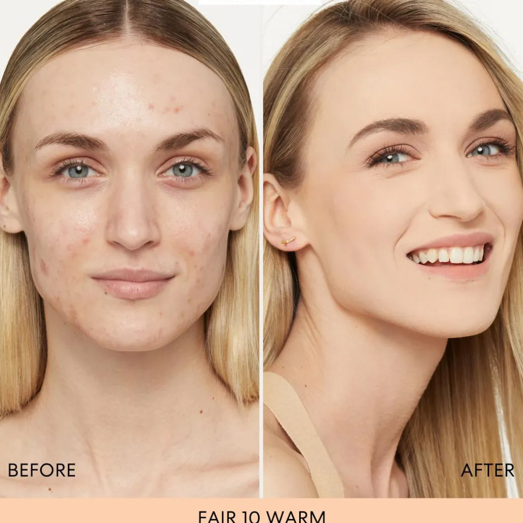 Fair 10 Warm: Synthetic Fluorphlogopite, Mica, Zinc Stearate, Silica, Calcium Carbonate, Diphenyl Dimethicone/Vinyl Diphenyl Dimethicone/Silsesquioxane Crosspolymer, Caprylic/Capric Triglyceride, Magnesium Myristate, Dimethicone, Sorbitan Sesquiisostearate, Helianthus Annuus (Sunflower) Seed Oil, Squalane, Butyrospermum Parkii (Shea) Butter, Ananas Sativus (Pineapple) Fruit Extract, Theobroma Cacao (Cocoa) Seed Butter, Glycyrrhiza Glabra (Licorice) Root Juice, Paeonia Albiflora Root Extract, Ethylhexylglycerin, Sorbic Acid, Methicone, Aluminum Hydroxide, Triethoxycaprylylsilane, Hydrogen Dimethicone, Tocopherol, Tetrahexyldecyl Ascorbate, Tocopheryl Acetate, Citric Acid. +/- (May Contain/Peut Contenir) Titanium Dioxide (Ci 77891), Iron Oxides (Ci 77491, Ci 77492, Ci 77499).