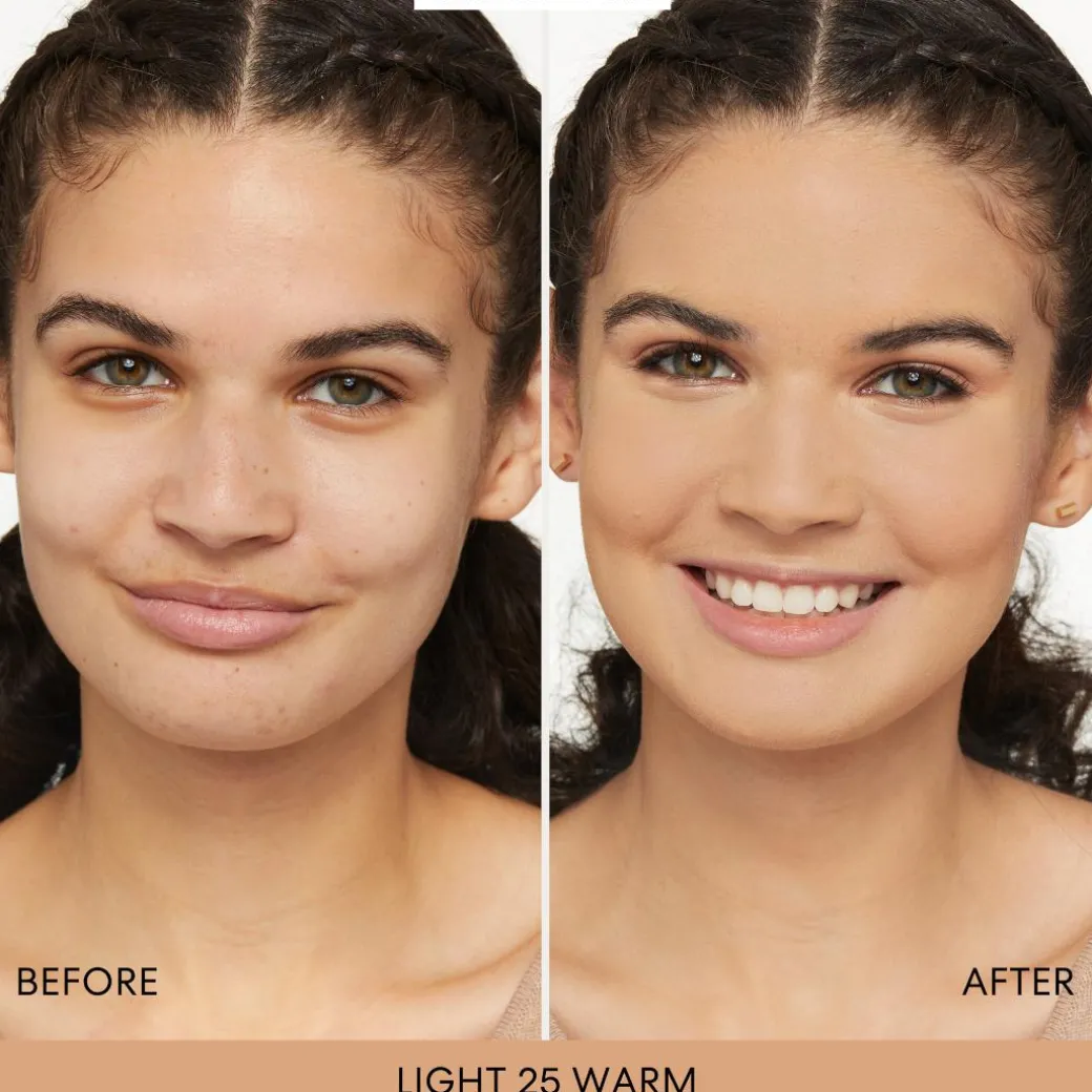 Light 25 Neutral: Synthetic Fluorphlogopite, Mica, Zinc Stearate, Silica, Calcium Carbonate, Diphenyl Dimethicone/Vinyl Diphenyl Dimethicone/Silsesquioxane Crosspolymer, Caprylic/Capric Triglyceride, Magnesium Myristate, Dimethicone, Sorbitan Sesquiisostearate, Helianthus Annuus (Sunflower) Seed Oil, Squalane, Butyrospermum Parkii (Shea) Butter, Ananas Sativus (Pineapple) Fruit Extract, Theobroma Cacao (Cocoa) Seed Butter, Glycyrrhiza Glabra (Licorice) Root Juice, Paeonia Albiflora Root Extract, Ethylhexylglycerin, Sorbic Acid, Methicone, Aluminum Hydroxide, Triethoxycaprylylsilane, Hydrogen Dimethicone, Tocopherol, Tetrahexyldecyl Ascorbate, Tocopheryl Acetate, Citric Acid. +/- (May Contain/Peut Contenir) Titanium Dioxide (Ci 77891), Iron Oxides (Ci 77491, Ci 77492, Ci 77499).