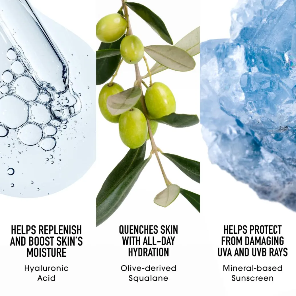Aqua, Coconut Alkanes, Propanediol, Titanium Dioxide, Squalane, Trehalose, Glycerin, Agar, Isostearic Acid, Polysorbate 60, Silica, Sorbitan Sesquiisostearate, Sodium Hyaluronate, Caprylic/Capric Triglyceride, Poly-Glyceryl-4 Laurate/Succinate, Globularia Cordifolia Callus Culture Extract, Sali-Cornia Herbacea Extract, Coco-Caprylate/ Caprate, Aluminum Hydroxide, Pheno-Xyethanol, Hydrogen Dimethicone, Magnesium Stearate, Cellulose Gum, Butylene Glycol, Melilotus Officinalis Extract, Succinoglycan, Lauroyl Lysine, Magnesium Chloride, Calcium Chloride, Potassium Chloride, Potassium Sorbate, Alumina, Magnesium Oxide. (+/-) Iron Oxides (Ci 77492, Ci 77491, Ci 77499), Titanium Dioxide (Cl 77891)