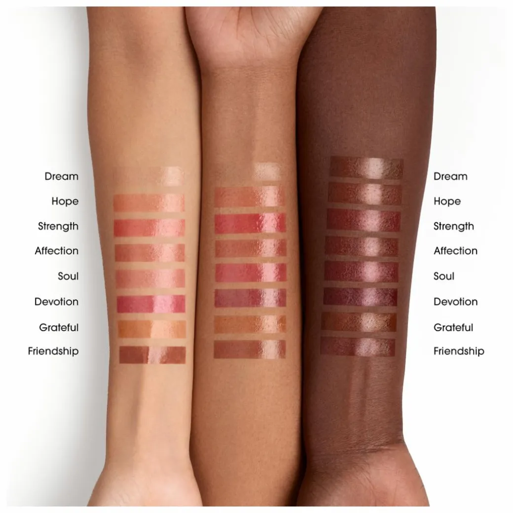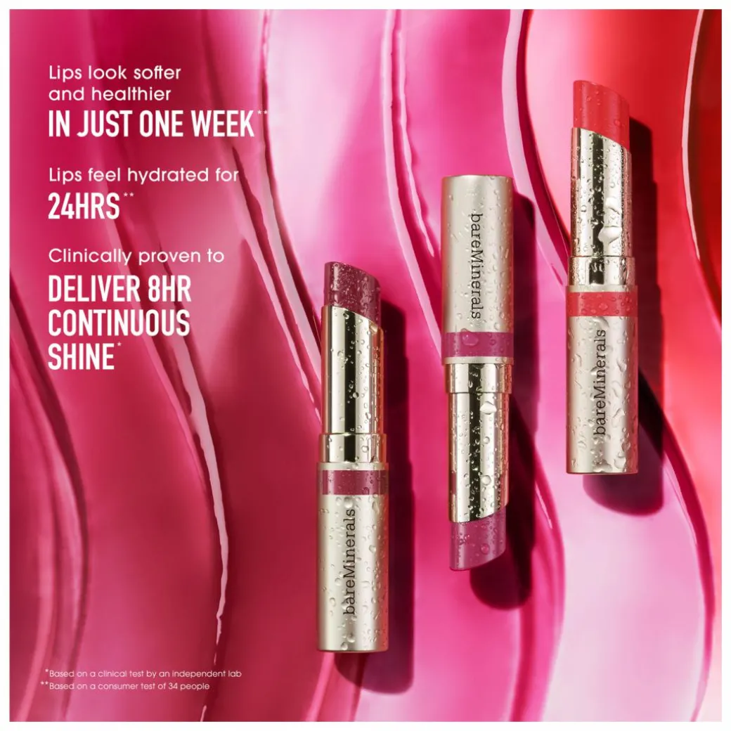 This hybrid lip gloss-balm drenches lips in juicy shine + 24 hr hydration* for lips that are visibly smoother, softer and more supple over time.