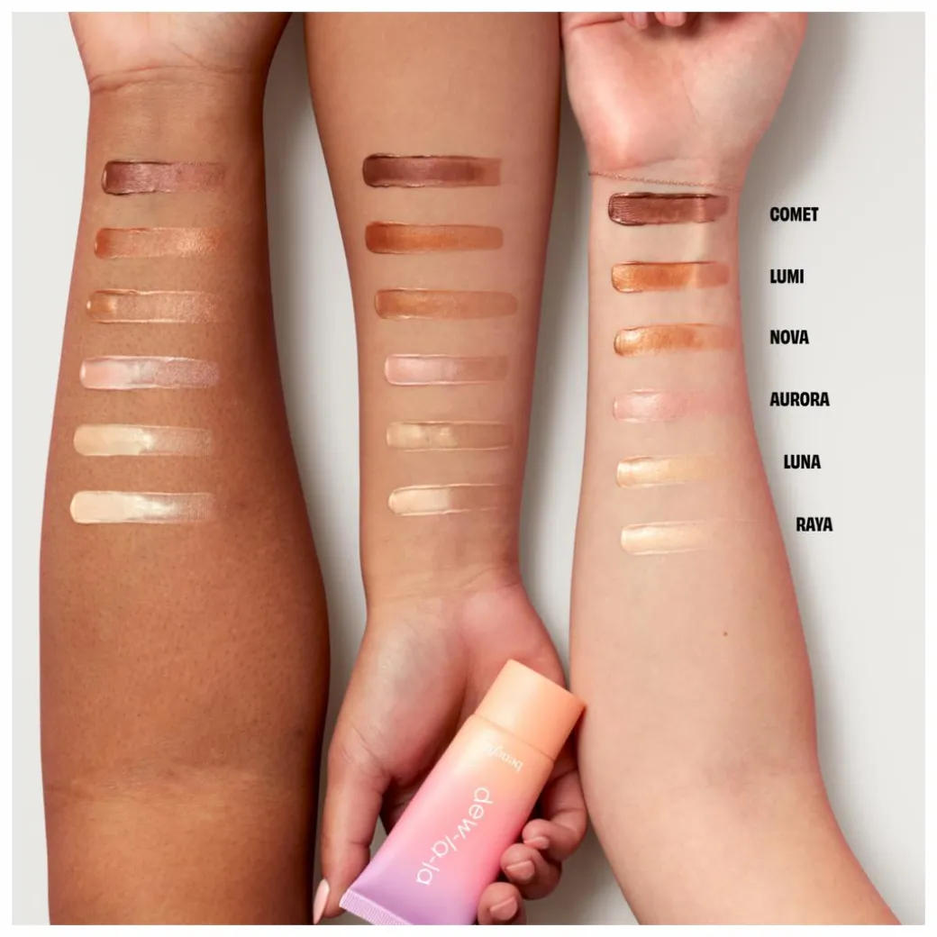 Sparkles and glitter“perfect for fancy parties, New Year’s Eve, and arts & crafts. But in your go-to everyday highlighter? Ehh, maybe not (unless you’re a mermaid?). Enter Dew-la-la, a lightweight, skin-loving liquid highlighter for a sheer, effortless glow (sans sparkles). Think perpetual golden hour meets fresh springtime dew. Plus, thanks to the ingredients, your skin willlook brighter and feel more moisturized over time. Smooth it on for natural-looking, lit-from-within radiance that’ll have you saying…”Dew-la-la!”