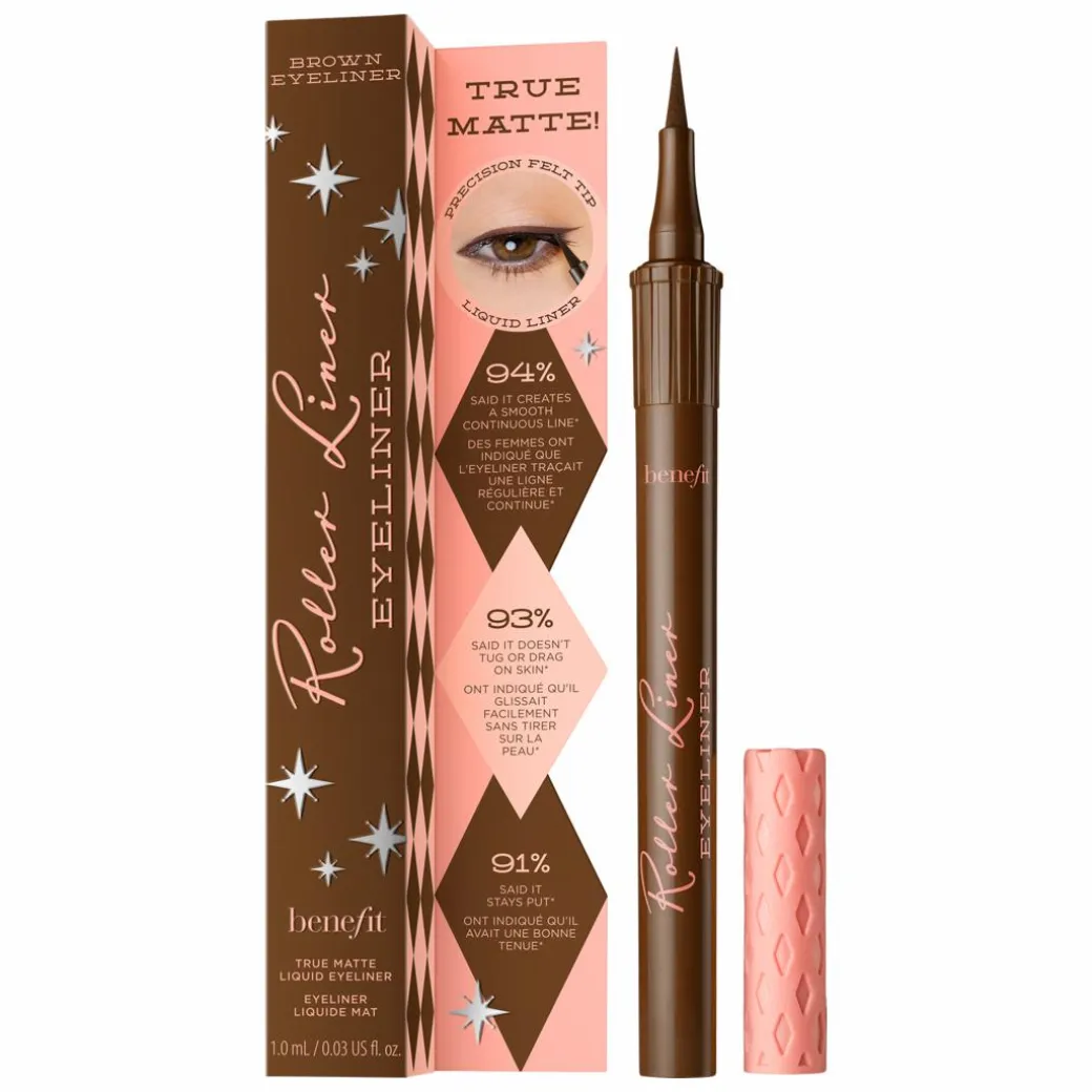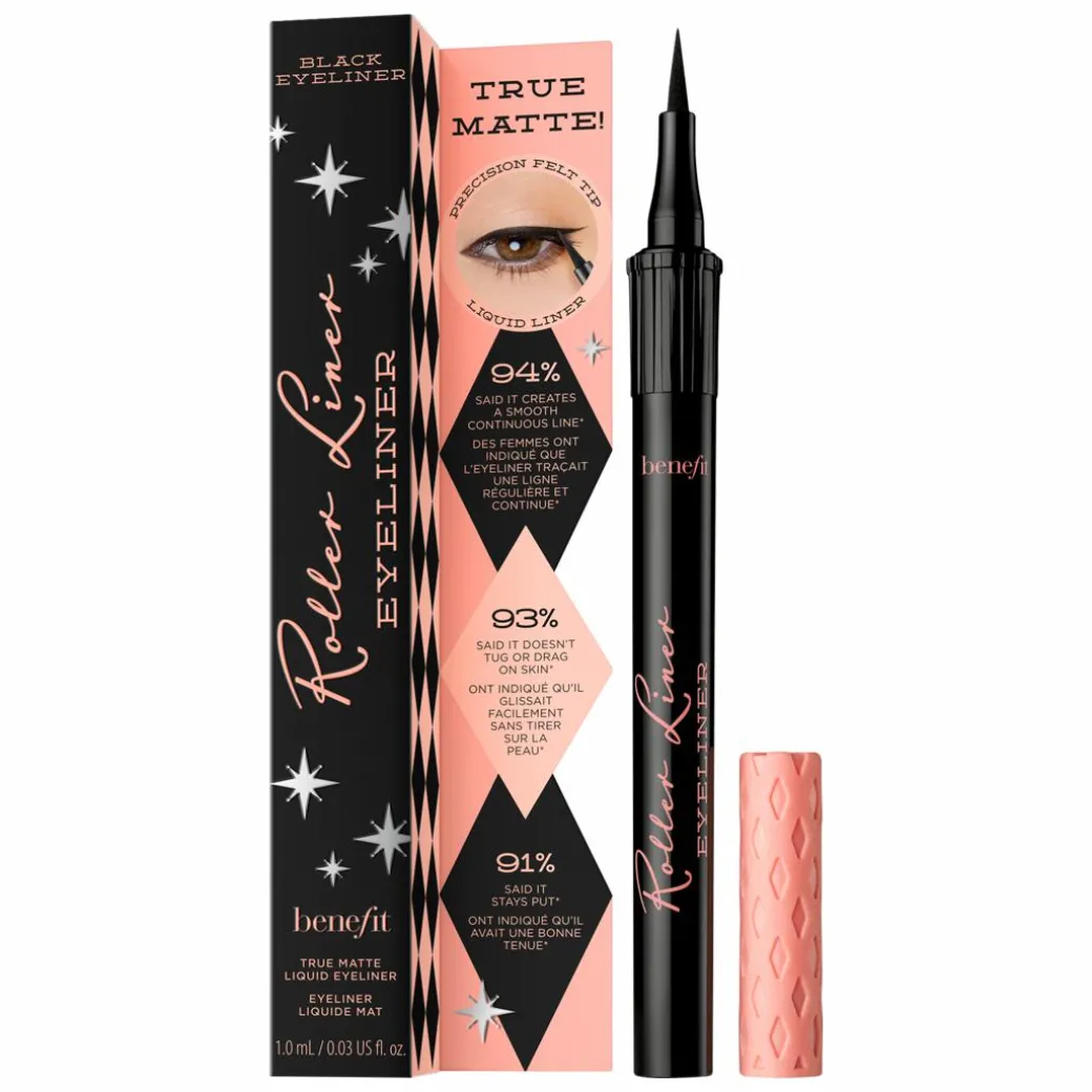 Do you wish your eyeliner was a little easier on the eye? Discover Benefit Roller Liner Liquid Eyeliner, a precision fine tip liquid eyeliner that applies effortlessly and has a long-wearing matte finish.
