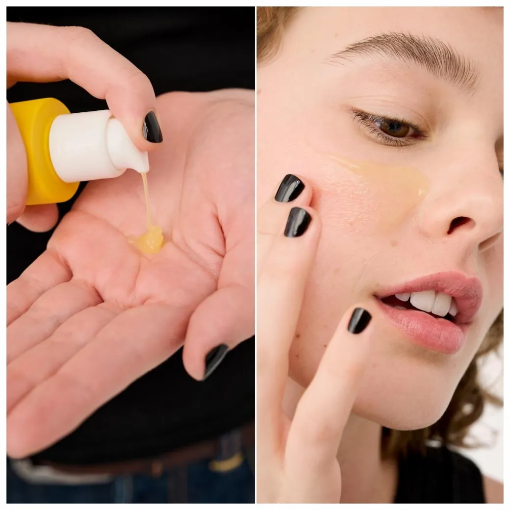 - Spread 2-3 pumps evenly onto face, then let dry 30 min.