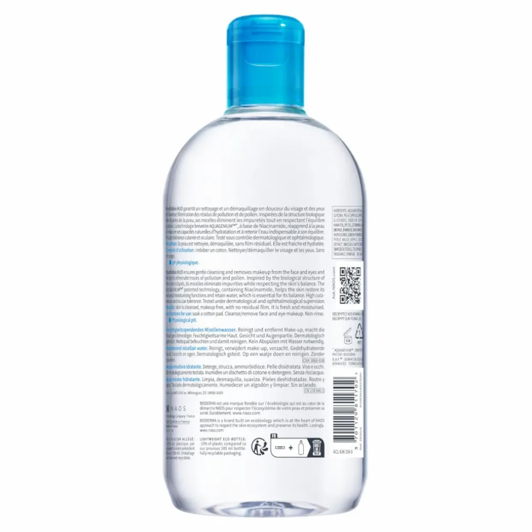 Hydrabio H2O removes impurities using micro-emulsifying micelles, while added decongesting active ingredients make the skin feel instantly refreshed and perfectly clean. The complexion regains its comfort, suppleness and radiance in one step.