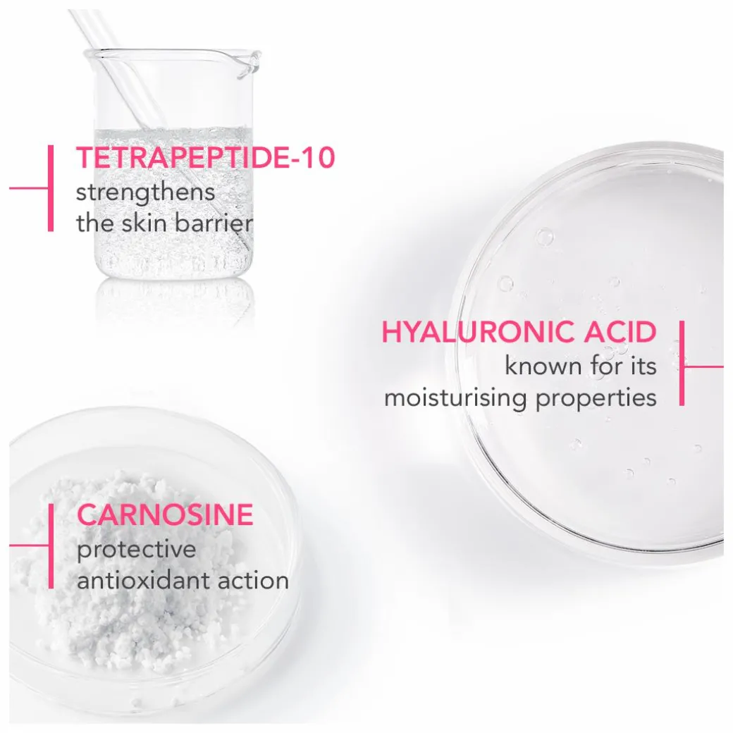 The serum hydrates without feeling heavy, soothing sensitive skin and strengthening the skin barrier, and a more substantial skin barrier is less prone to sensitivity. The serum protects against environmental and lifestyle stress to delay-sensitive skin’s accelerated ageing side effects.