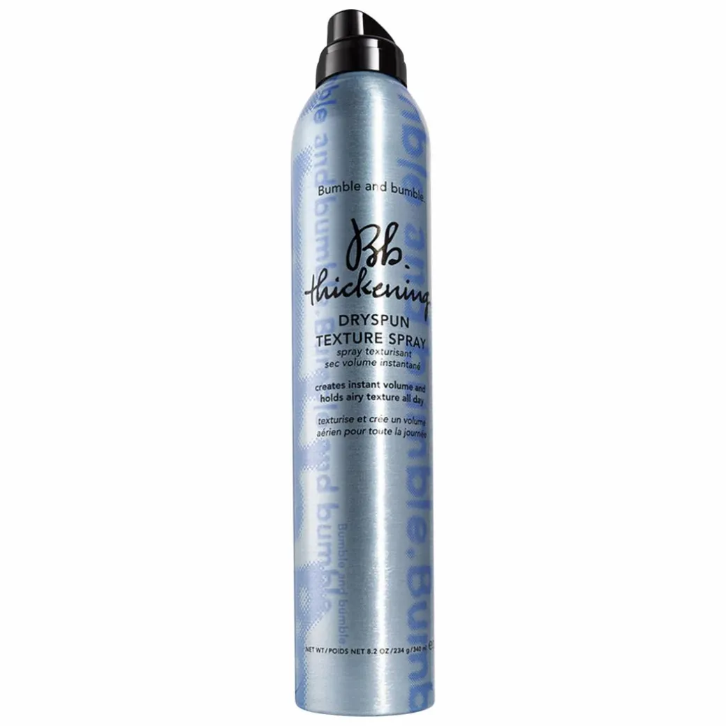 Create instant and continuous volume with the Bumble and bumble Thickening Dryspun Texture Spray, a translucent dry finishing spray that lifts and volumises tresses, while creating an airy texture.