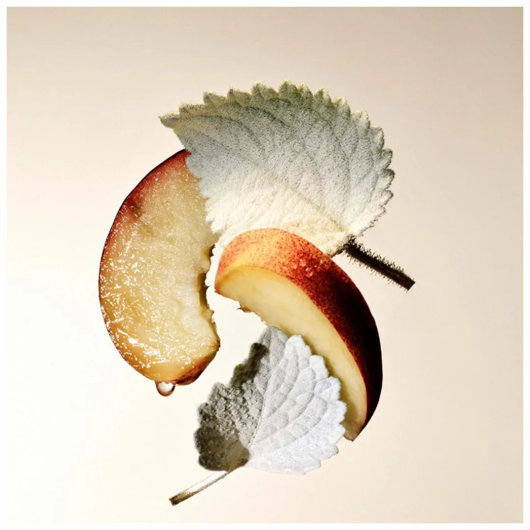- Sweet and surprising with nuances of white peach and powdery orris flower.