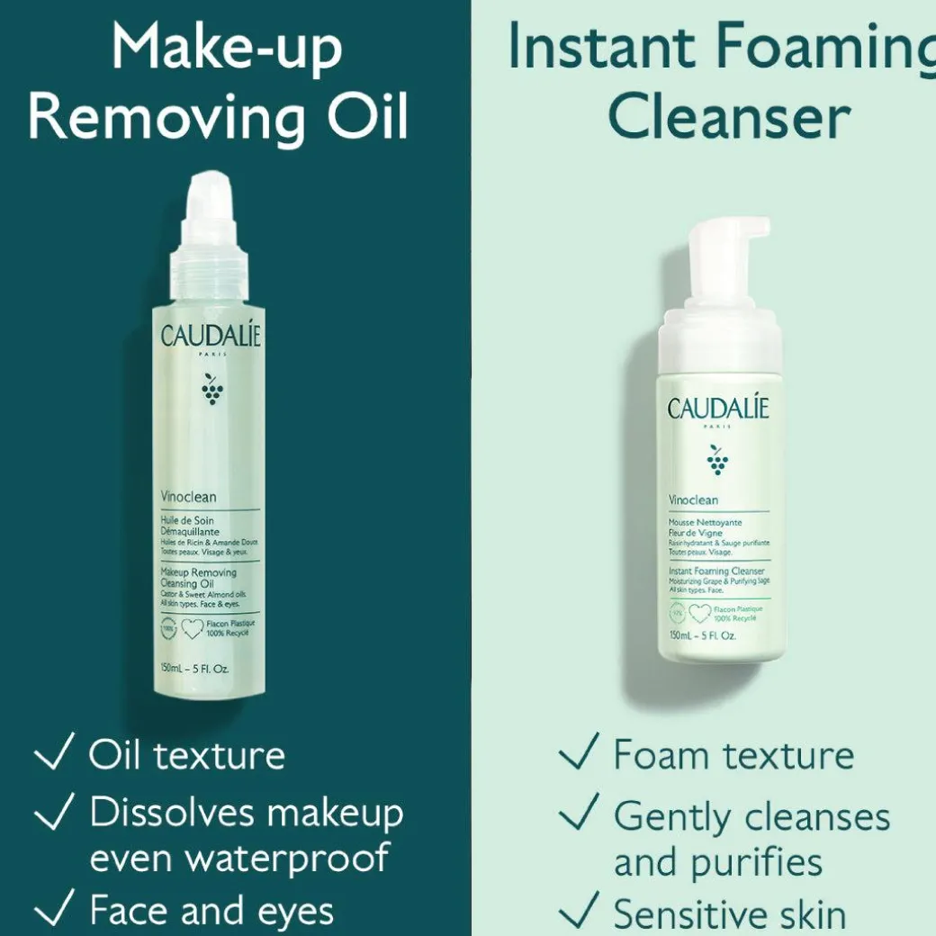 Get double the cleansing action with the Caudalie Vinoclean Instant Foaming Cleanser Duo, a gentle foaming cleanser that removes makeup and impurities whilst soothing the skin.
