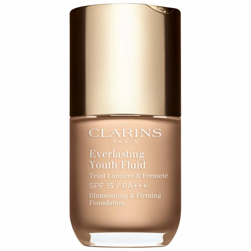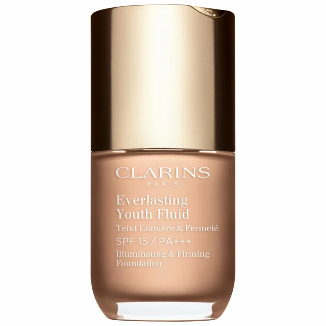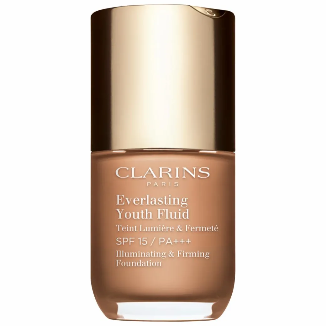 The Clarins Everlasting Youth Fluid Illuminating and Firming Foundation SPF15 is a long-wearing medium coverage formula that won’t set into fine lines and wrinkles.