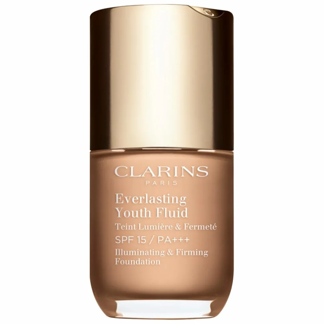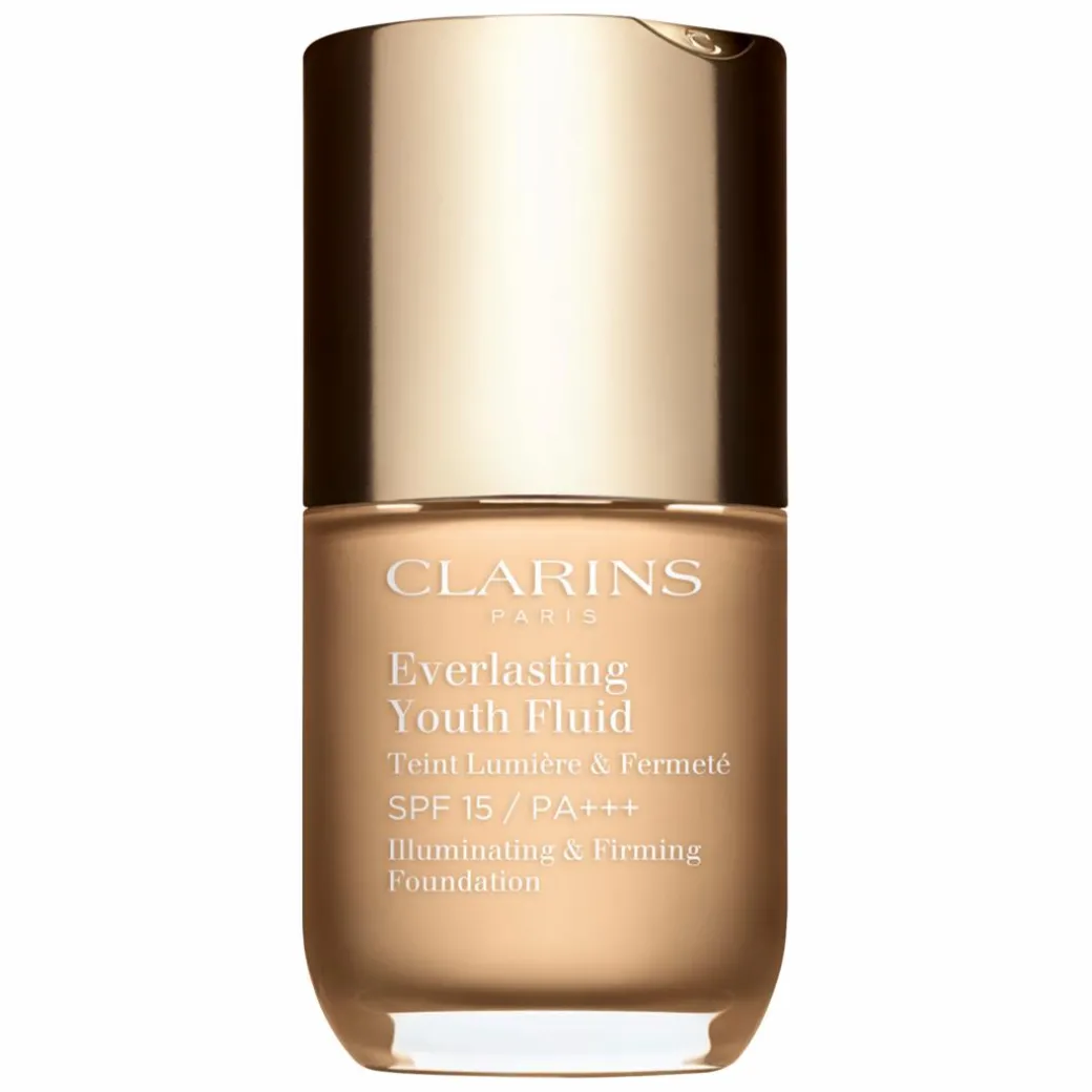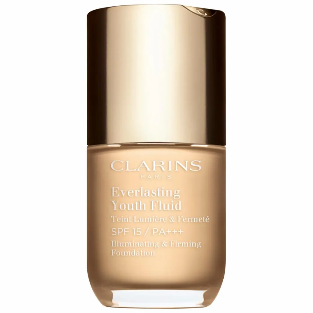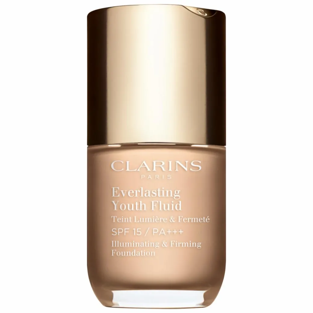 The Clarins Everlasting Youth Fluid Illuminating and Firming Foundation SPF15 is a long-wearing medium coverage formula that won’t set into fine lines and wrinkles.
