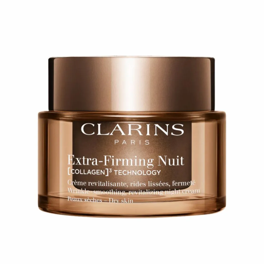 The new-generation Clarins Extra-Firming Revitalizing Night Cream – Dry Skin increases collagen reserves through Clarins’ innovative [Collagen]3 Technology, consisting of: