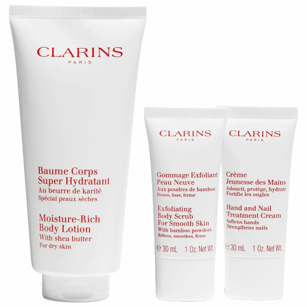- Includes the best-selling Clarins Moisture-Rich Body Lotion.