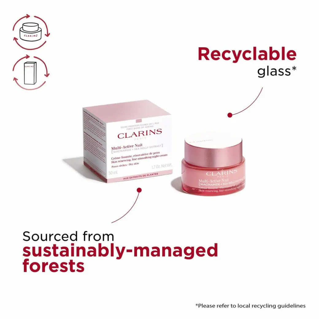 The Multi-Active Night Cream comes in a carton printed on paper from sustainably managed forests.