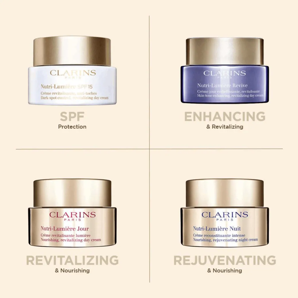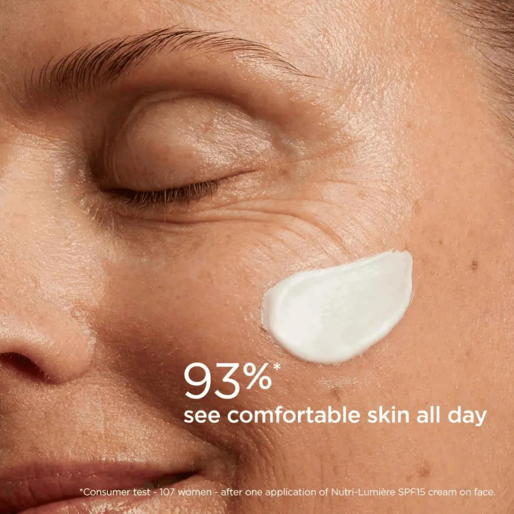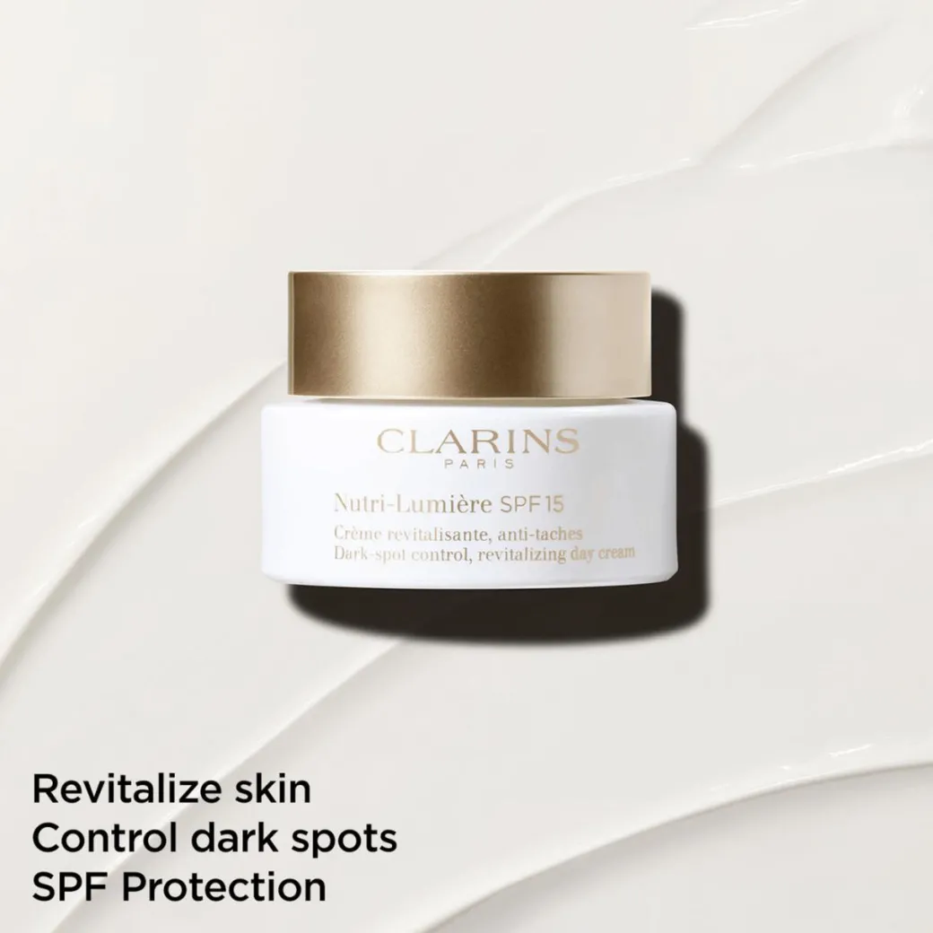 This comforting and creamy skincare product from Clarins is perfect for reviving and intensely nourishing skin that is undernourished. Clarins Nutri Lumiere SPF15 Day Cream contains an innovative technology: the [BRIGHTENING COMPLEX]. Composed of niacinamide and a duo of plant extracts, it helps reduce the appearance of dark spots and prevent their appearance. For even better effectiveness on dark spots, Nutri-Lumiere’s formula includes SPF 15, which protects the skin from the UVA/UVB rays that are responsible for dark spots appearing as well as photoaging.