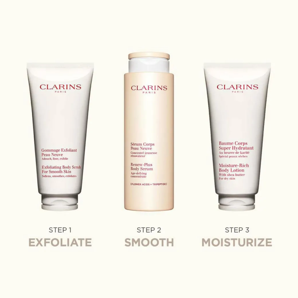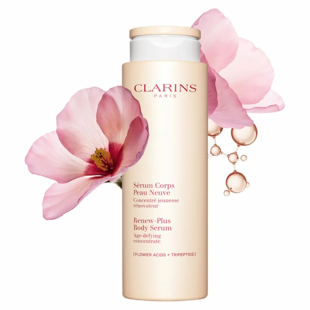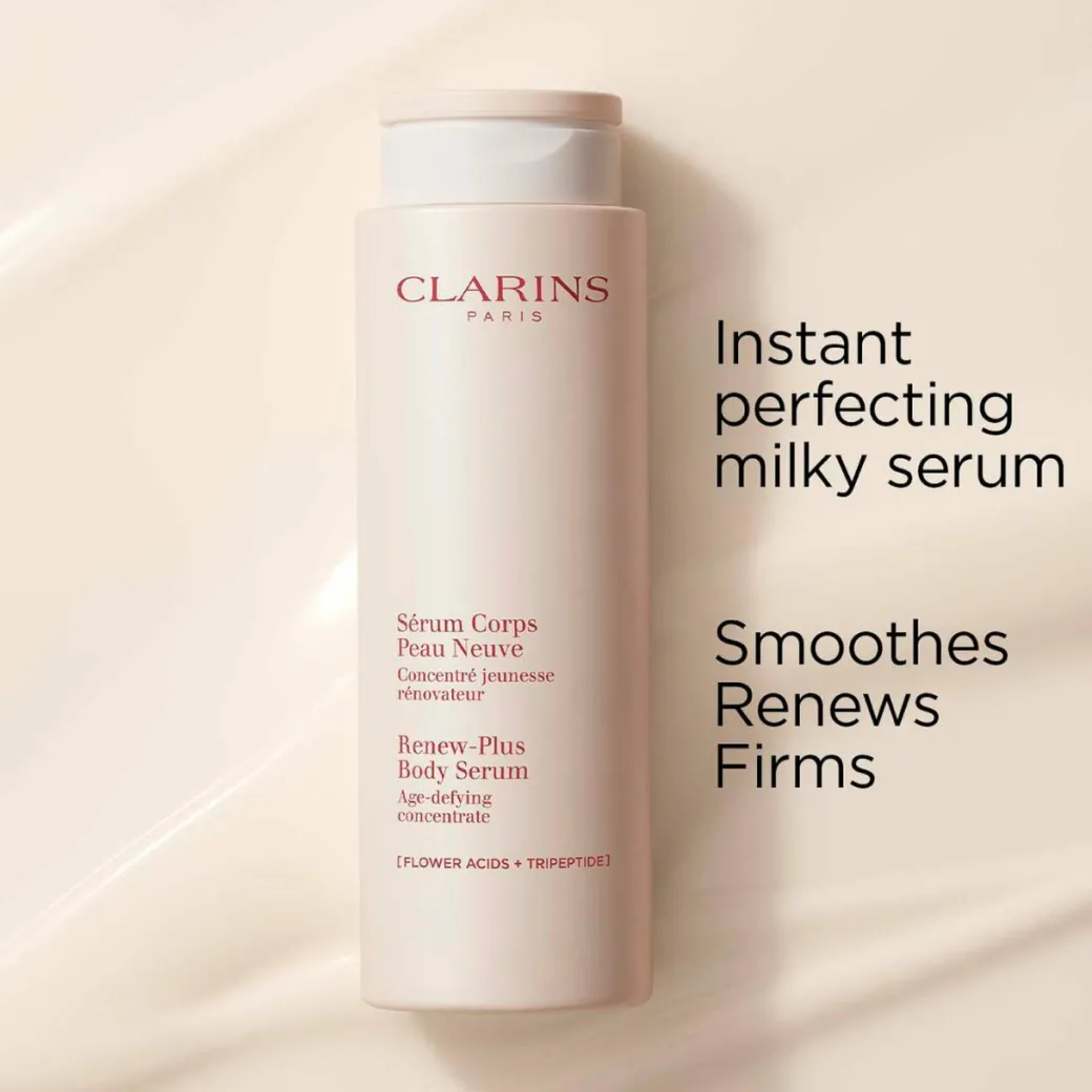Reawaken your skin’s energy with the Clarins Renew-Plus Body Serum, a rejuvenating fluid with firming properties.