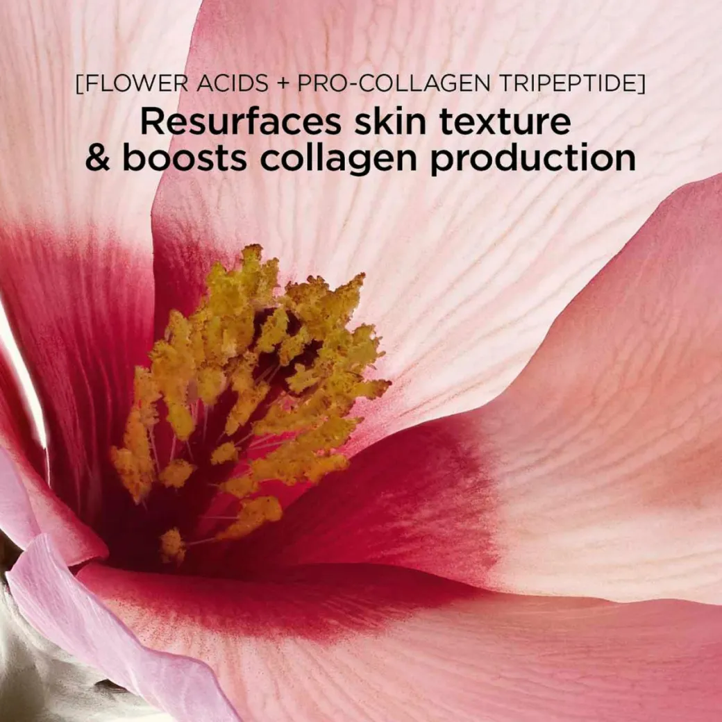 The concentrated formula helps to restore the youthfulness of your skin by boosting its radiance and its moisture levels every day. Dead skin cells are gently eliminated and rough patches are smoothed making for a softer, more refined look and feel.