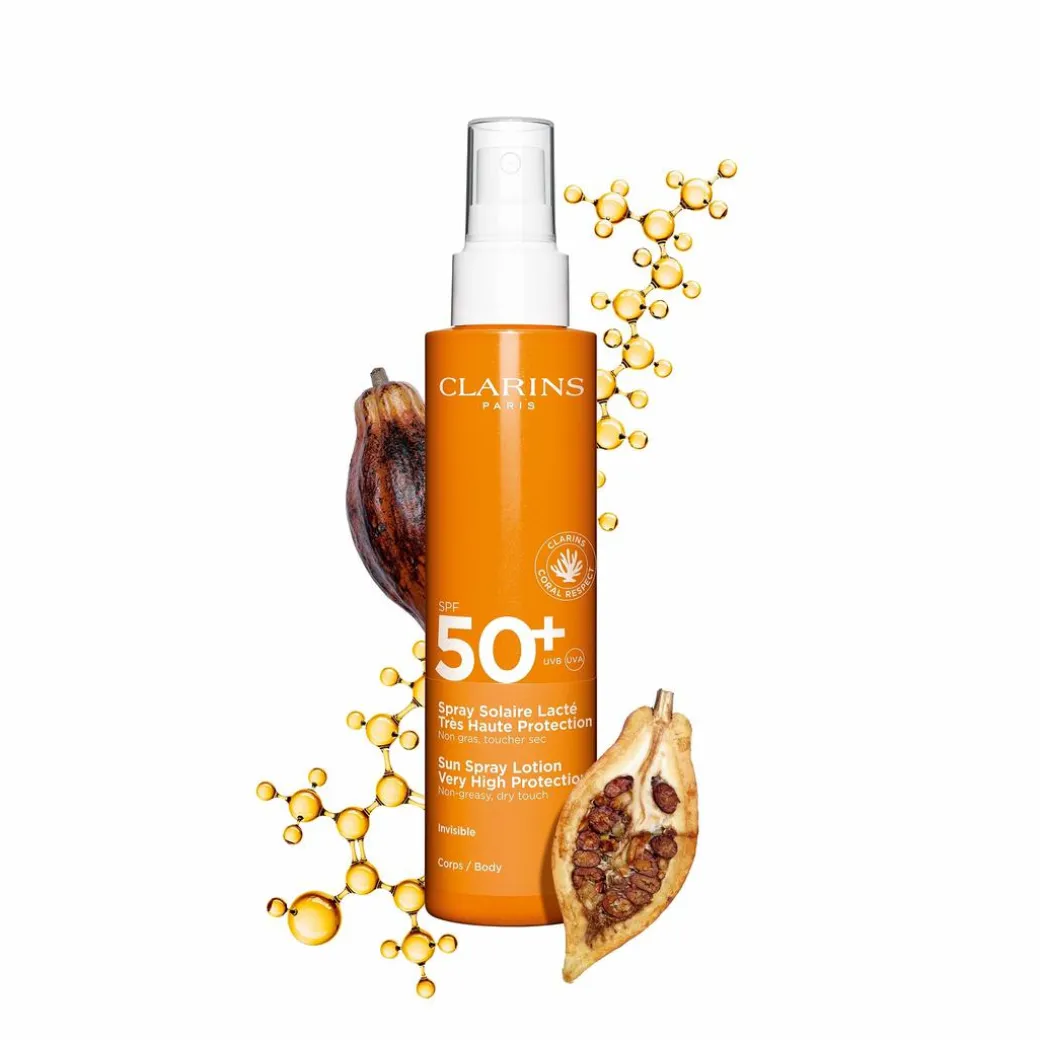 Clarins Sun Spray Lotion Very High Protection SPF50+ is formulated with an eco-friendly consciousness, using recycled packaging materials.