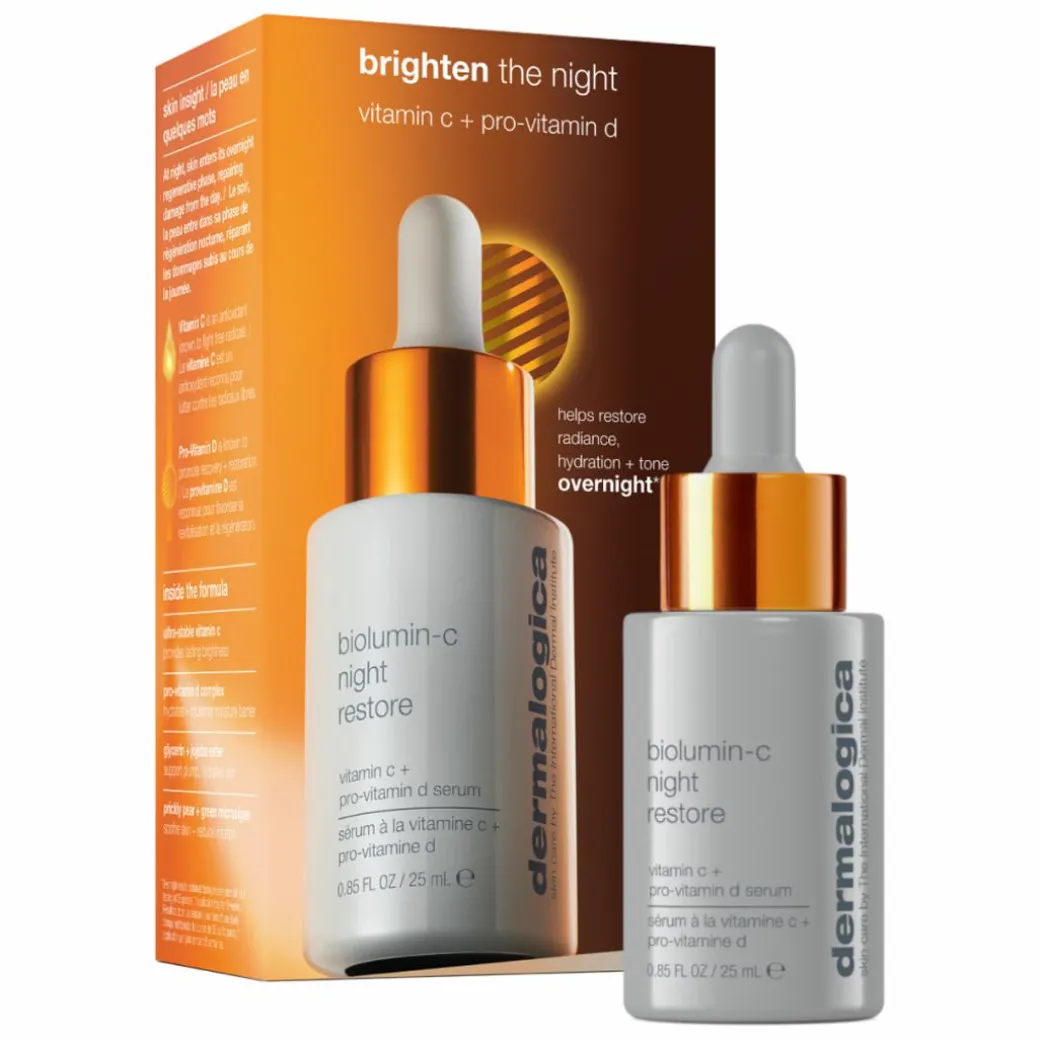 Biolumin-C Night Restore from Dermalogica, a Vitamin C and Pro-Vitamin D Complex serum that helps restore radiance, hydration, and tone overnight.