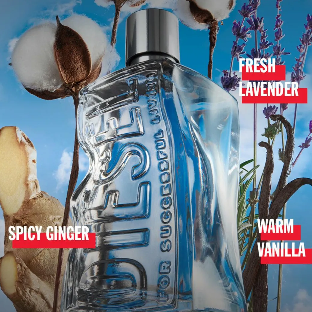 A truly unisex fragrance, D by Diesel perfectly balances cool and warm tones. Opening with a spicy and sensuous hit of ginger, the initial spritz is accompanied by a bright, uplifting touch of bergamot. The first few seconds feel traditionally masculine with a slightly musky feel before the fragrance transforms to have universal appeal. A breath of freshness washes over you as the heart of cotton becomes dominant, creating a cool, crisp feeling as it blends with soothing lavender. The vanilla bourbon accord of the base introduces a hint of sweetness and a cosy warmth as it blends with ambery woods.