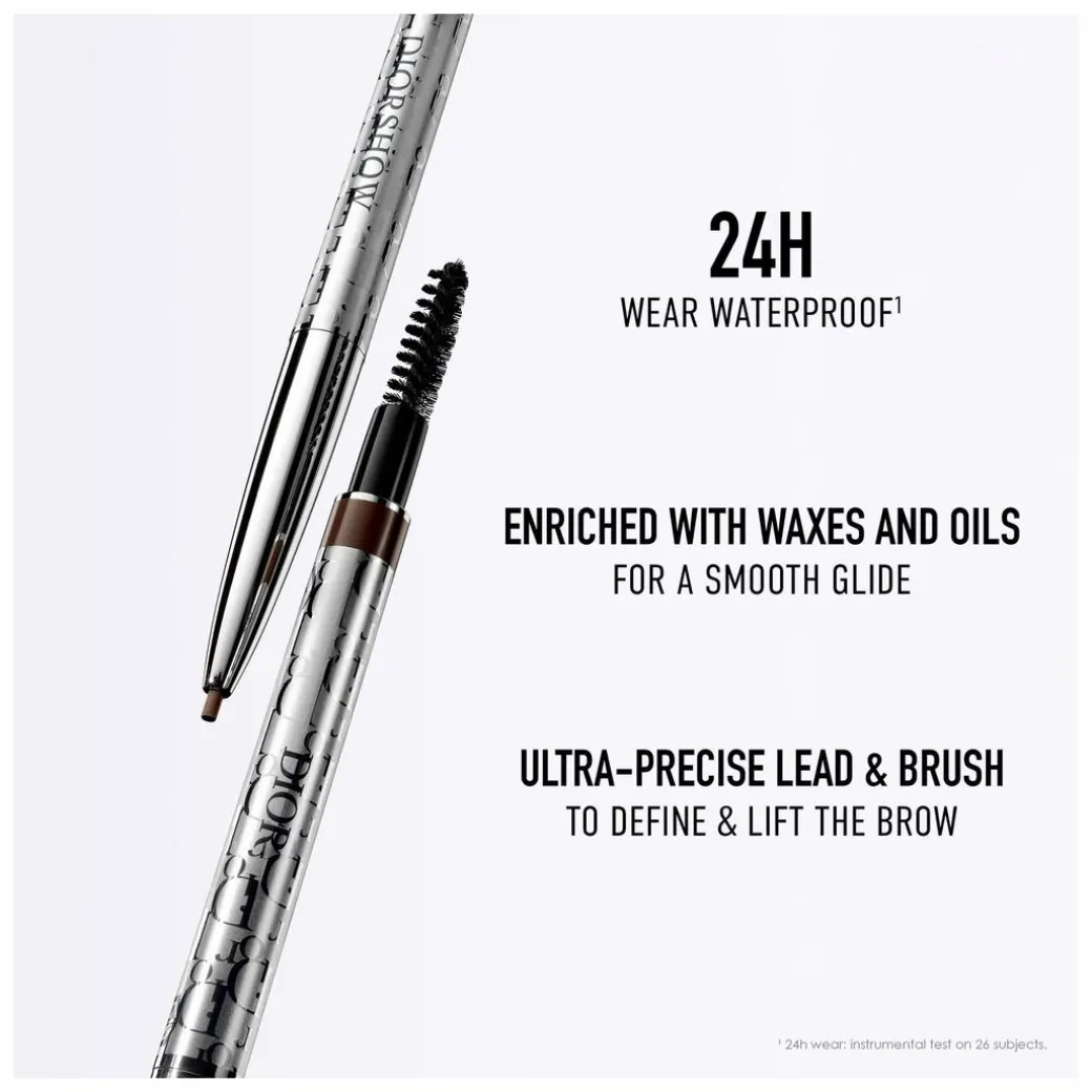 The NEW 24h* waterproof Diorshow Brow Styler pencil with its ultra-fine tip enables brows to be outlined and redefined for a fuller shape with a natural finish.