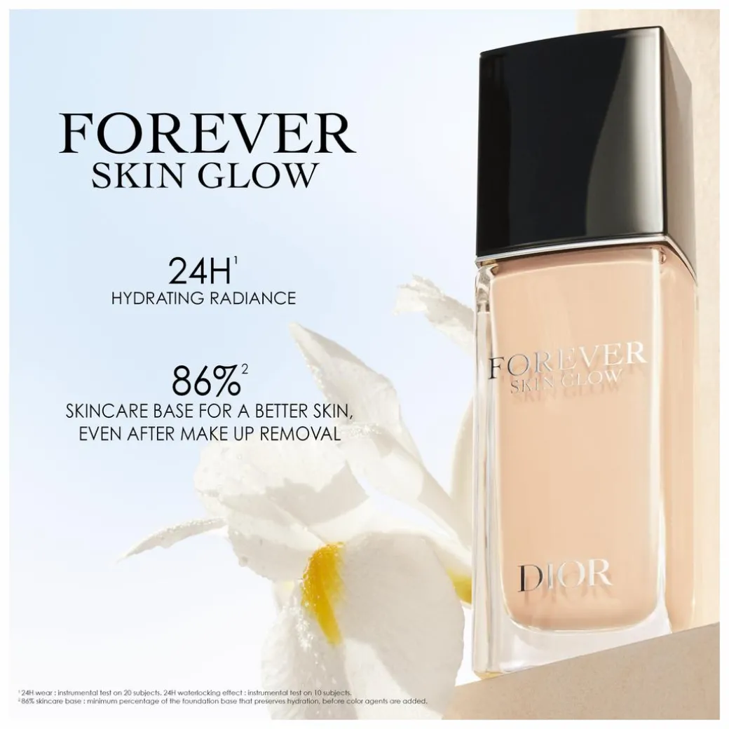 Available in more than 40 shades created to match all skin tones, the Dior Forever Skin Glow foundation is also clean.* Learn more about our commitment and ingredients in the Formula section. Formulated with an 86%*** skincare base, it contains extracts of wild pansy for hydration, hibiscus and nasturtium for radiance and Iris for its antioxidant properties and iris for its protective properties. Tested on sensitive skin, it is non-comedogenic and offers up to SPF20 protection.