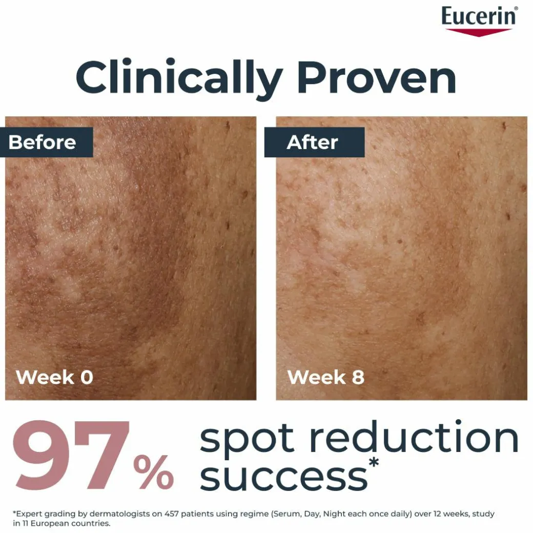 Apply the Eucerin serum onto a cleansed face both morning and evening by gently massaging into the skin before using a moisturiser. The formula is 2.5 x more effective when used daily with an SPF30 sunscreen, so don’t skip this step!