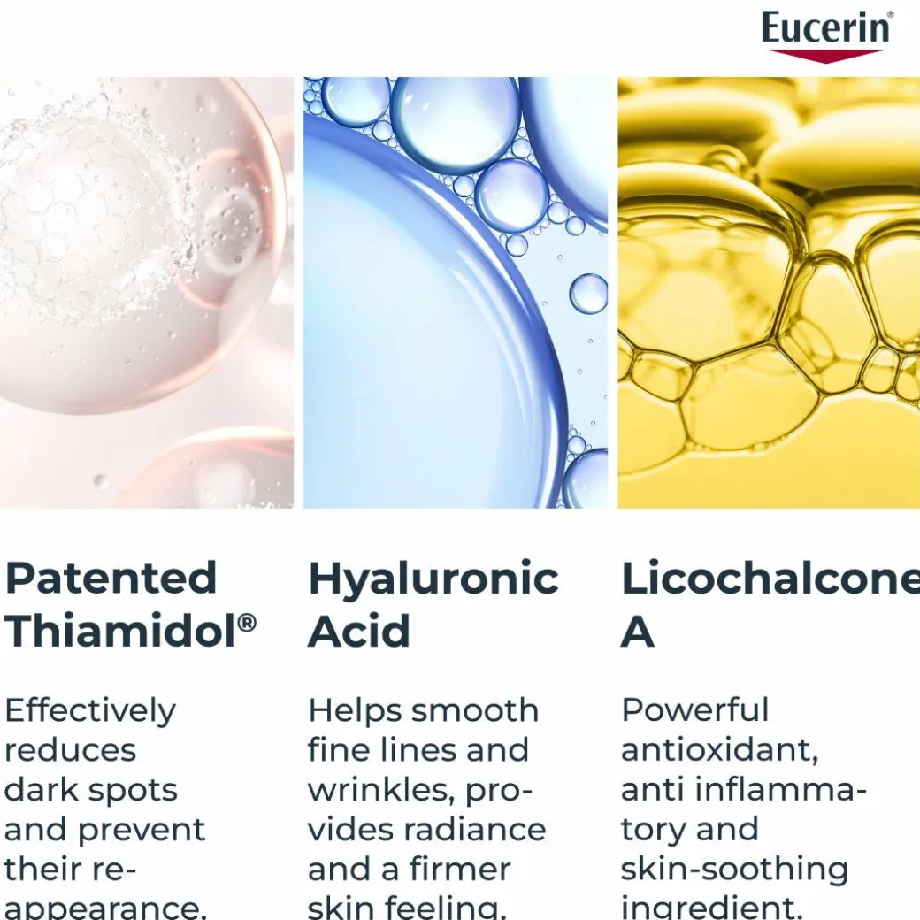 - Blends Eucerin-patented Thiamidol and hyaluronic acid for even, radiant skin.