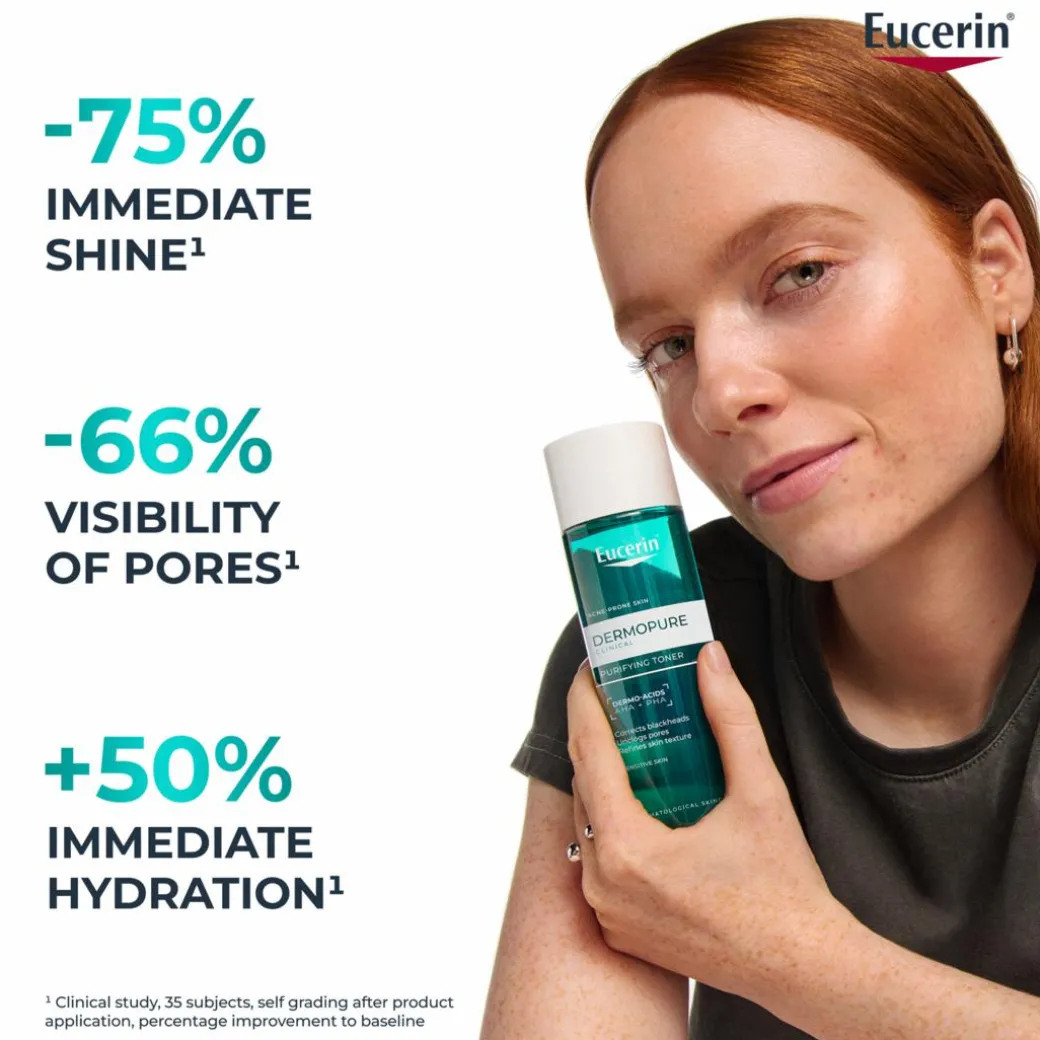 Eucerin DermoPure Purifying Toner is dermatologist-recommended and clinically proven to unclog pores, remove blackheads, and refine skin texture. Its powerful formula combines 10% Dermo-Acids (BHA, AHA, and PHA) to deliver gentle yet effective exfoliation.
