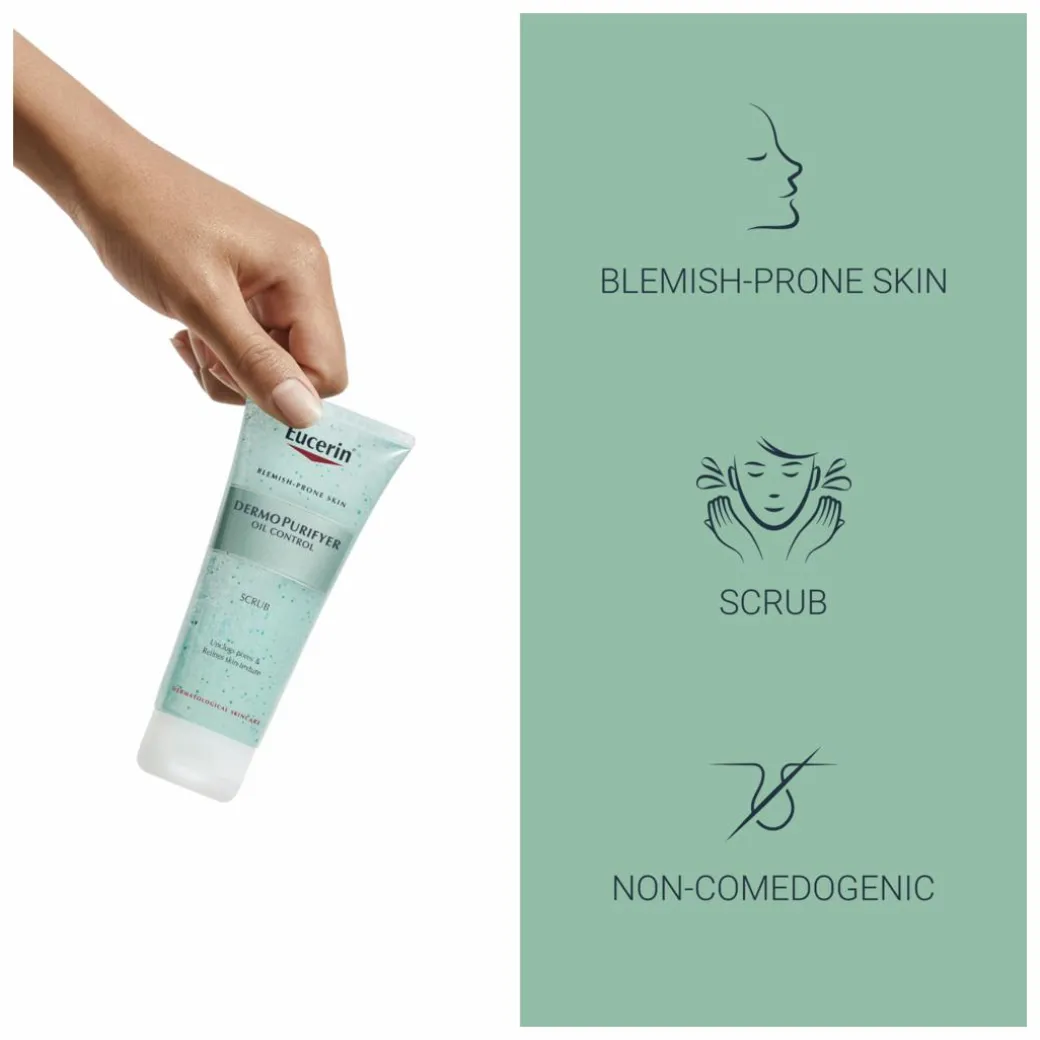 Tackle skin prone to blemishes, blackheads and clogged pores with the Eucerin DermoPURIFYER Scrub, a gel face and body exfoliator especially formulated for oily skin.