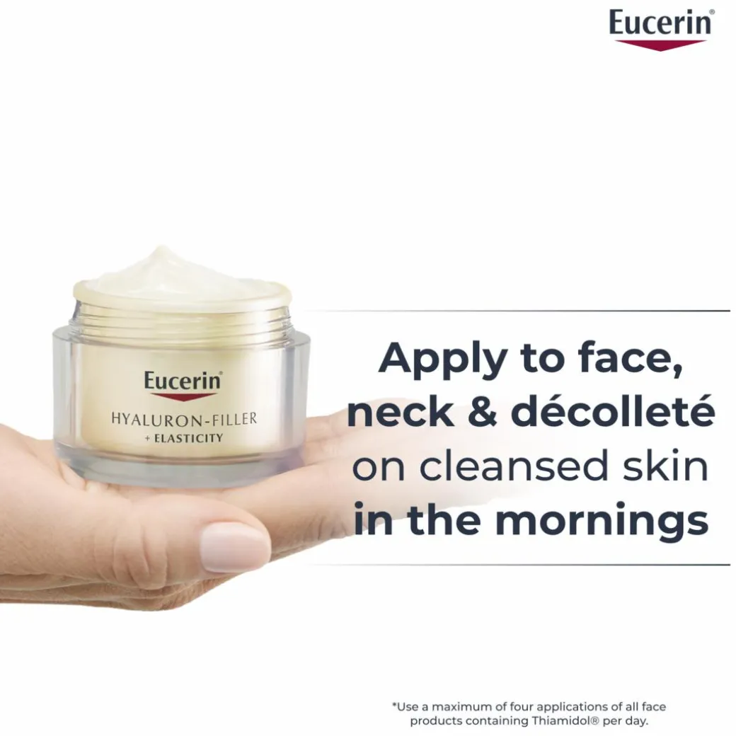 Hyaluron-Filler + Elasticity Day Cream is free of microplastics and has a UV filter system without octocrylene which is known to cause allergic reactions on skin and harm marine life.