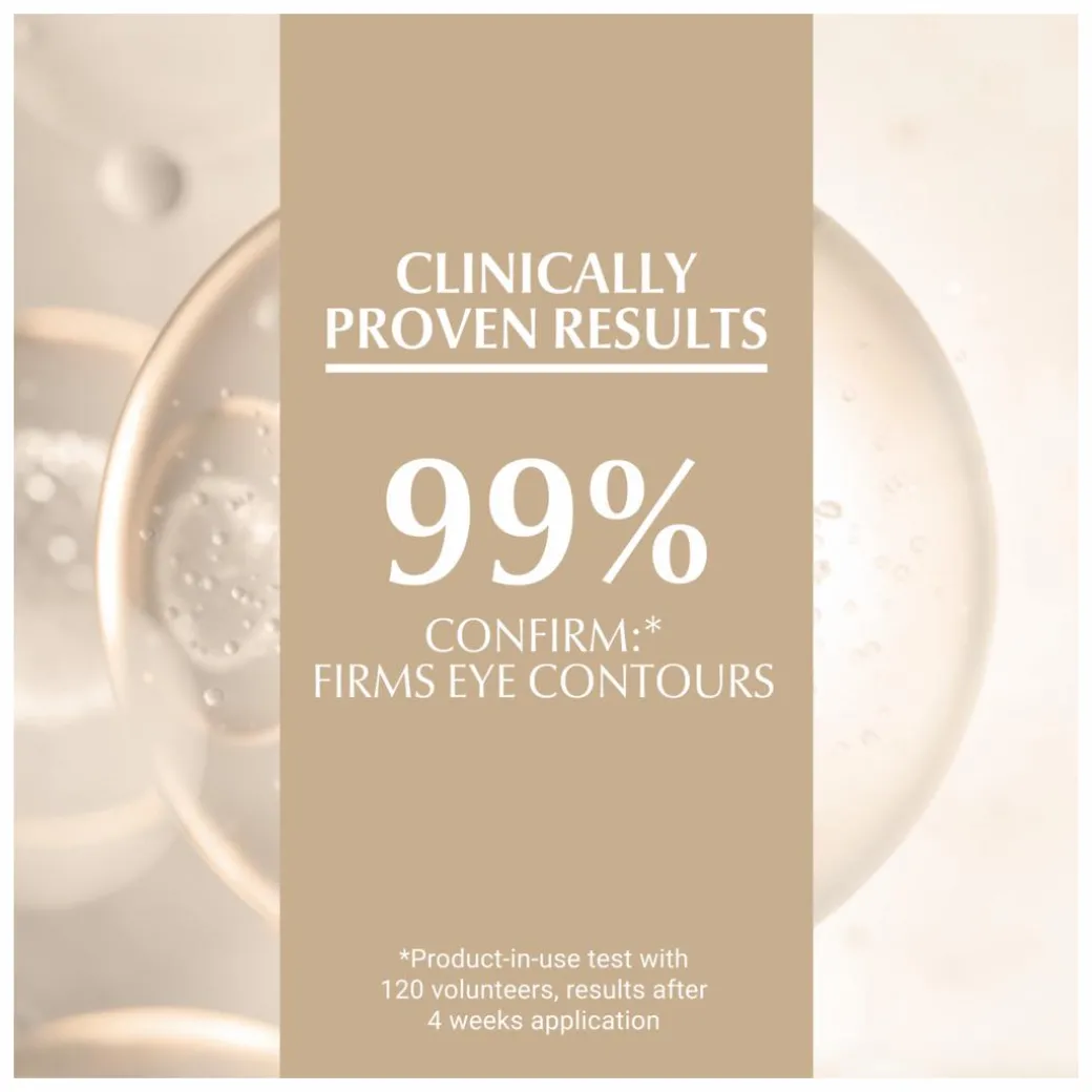 The eye area is intensely moisturised due to hydrating hyaluronic acid, which also plumps up and fills out deep wrinkles, while arctiin helps skin to become more resilient, and even boosts collagen renewal to firm and redensify the thin skin in the eye contour. By triggering collagen renewal, the cream discourages future fine lines and wrinkles from developing.