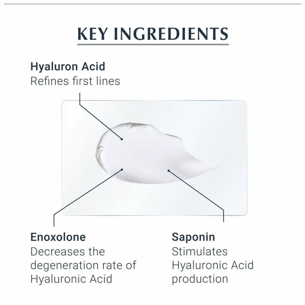 The rich but melting cream effectively targets all types of wrinkles using a duo of hyaluronic acid, which helps retain moisture in the skin and fill out fine lines and wrinkles, while bio-active glycine-saponin actively increases the skin’s own hyaluronic acid production.