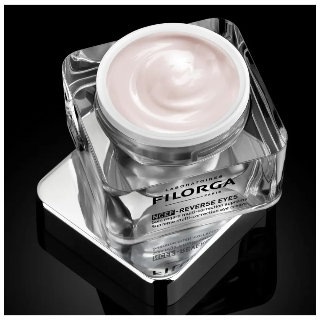 Renew your complexion with the Filorga NCEF Reverse Eyes Supreme Multi-Correction Eye Cream, a powerful serum that targets signs of the area around the eye contour to brighten, lift and firm skin.