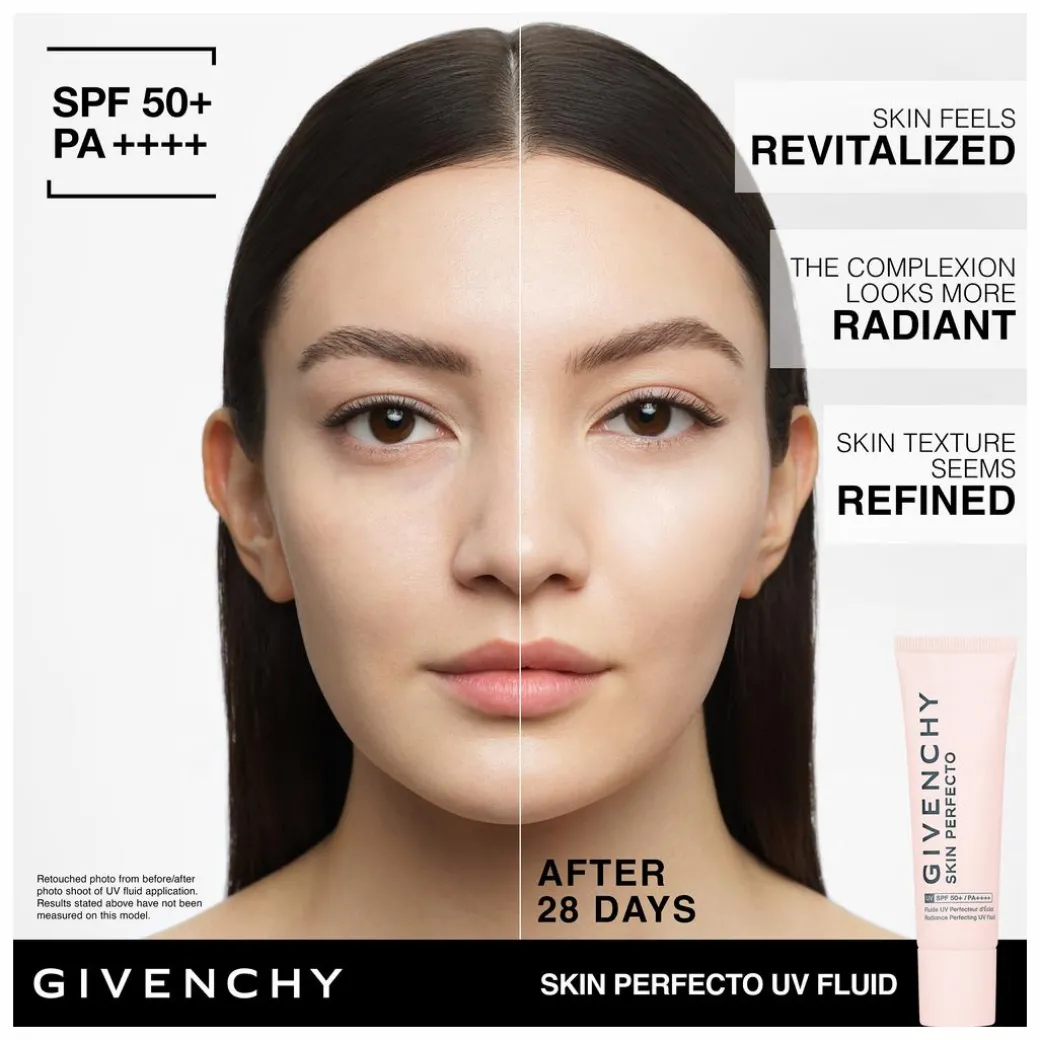 “The GIVENCHY Skin Perfecto Radiance Perfecting UV Fluid SPF50+ is your ally when you step foot out the door; pollution and UV rays are no match for it’s protective, radiance-enhancing formula.” – Ceryn, Escentual Beauty Team.