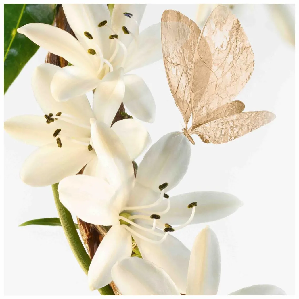 The honeysuckle flower has a suave, honeyed scent. Here, it is subtly transformed by the scents of the flower’s stem, which brings a fresh, grassy note to the perfume.