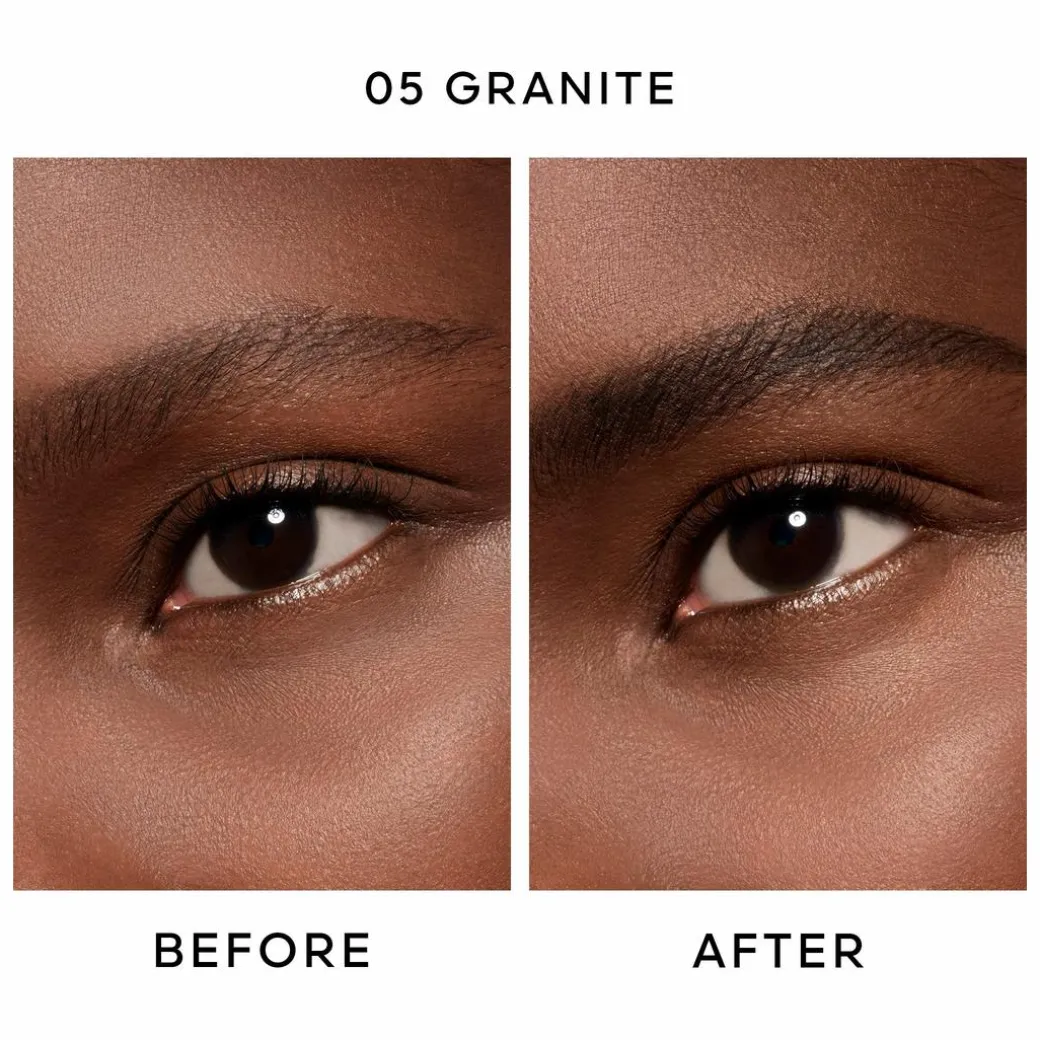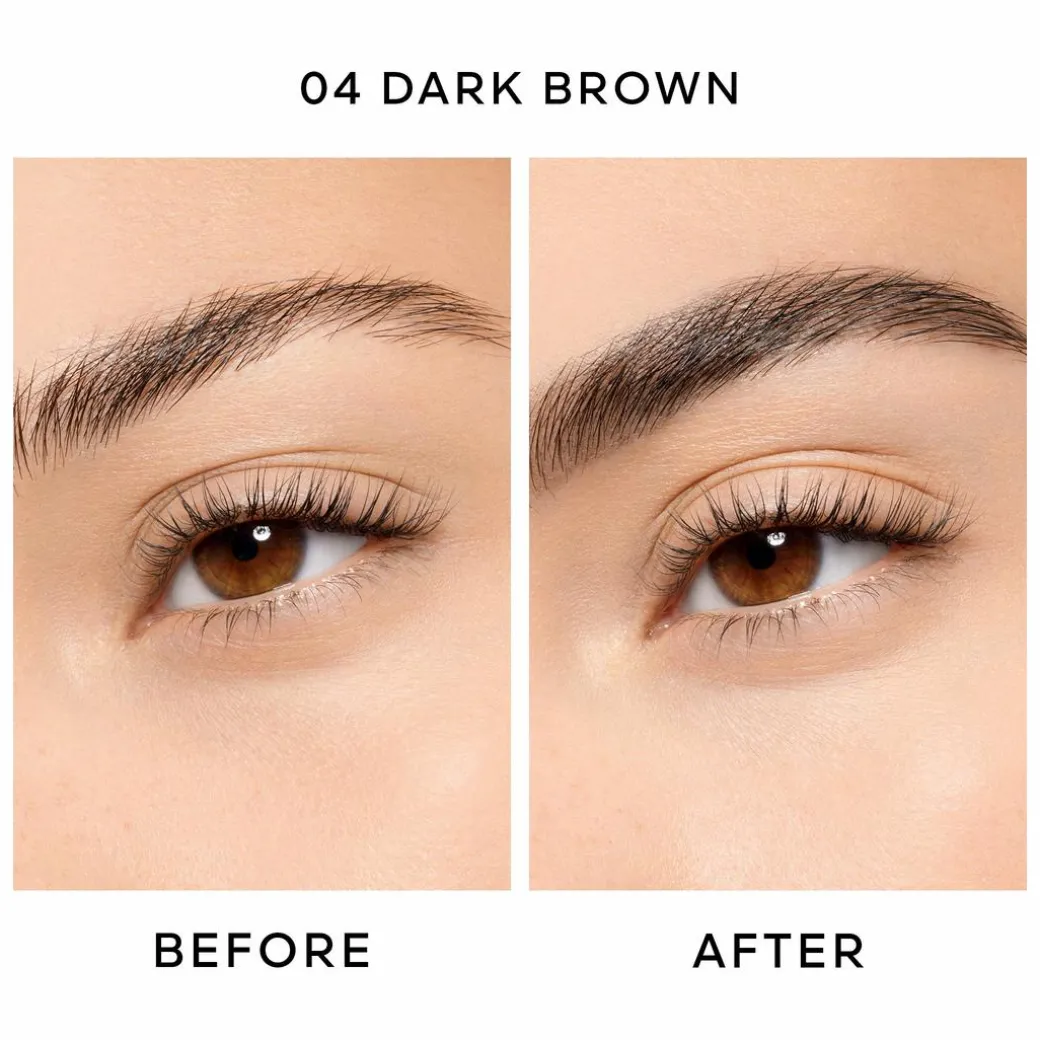 For naturally defined eyebrows, draw micro-strokes in the direction of hair growth with the fine tip of Brow G, then brush them on to blend the material and mimic the natural texture of eyebrows.