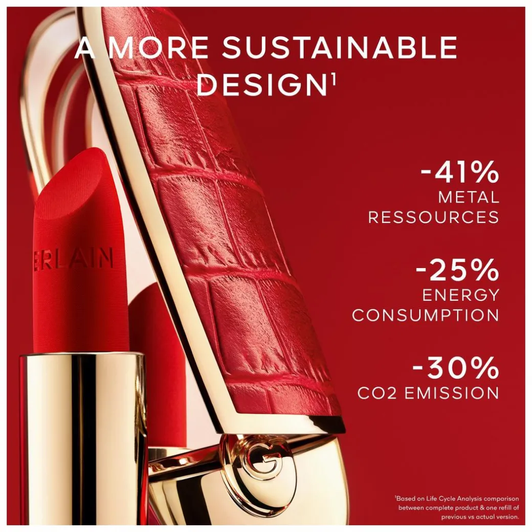 For 2024, Guerlain has given their best-selling Rouge G cases a modern makeover with aesthetic and environmental updates. The iconic cases have transitioned from their original silver finish to luxurious gold – they’re even more chic than before! This change isn’t just cosmetic; the new gold cases are 19% lighter, making them more convenient to carry. Additionally, Guerlain has optimised the manufacturing process, resulting in a 30% reduction in CO2 emissions.