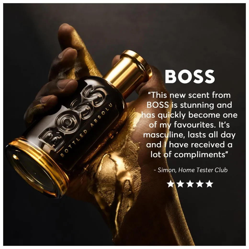 Exude the utmost sophistication with BOSS Bottled Absolu, a bold Parfum Intense featuring an irresistible roasted signature ingredient . Modern and memorable, this distinctive fragrance is testament to the power of the BOSS Man, who adds his golden touch to every decision, every challenge, and every success.