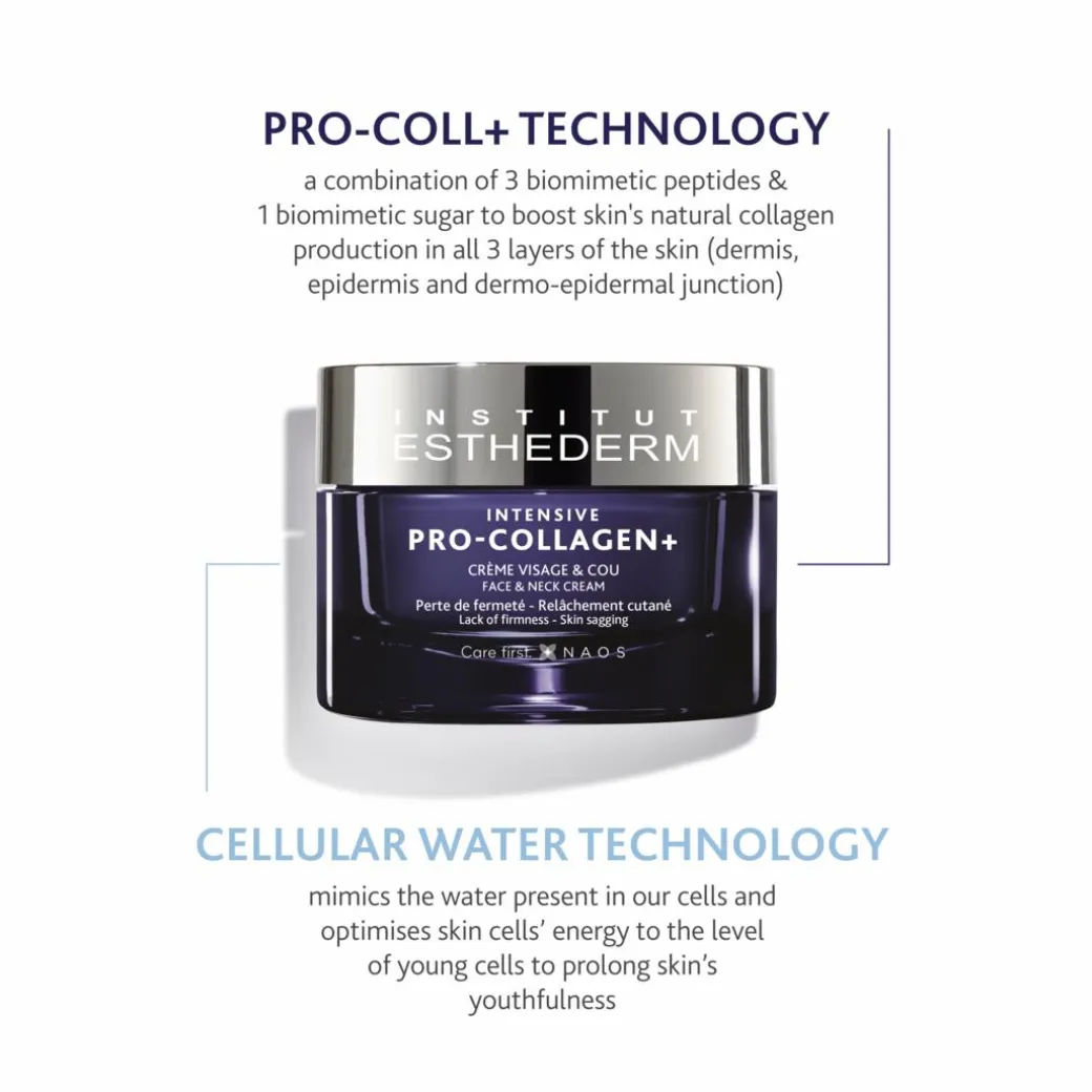 With age and the harsh effects of the external environment, the skin gradually loses its ability to synthesise its own collagen over time: from the age of 25, the collagen production decreases by 1% leading to the skin being less firmed, toned and volumed. Institut Esthederm new Intensive Pro Collagen+ cream is the solution!