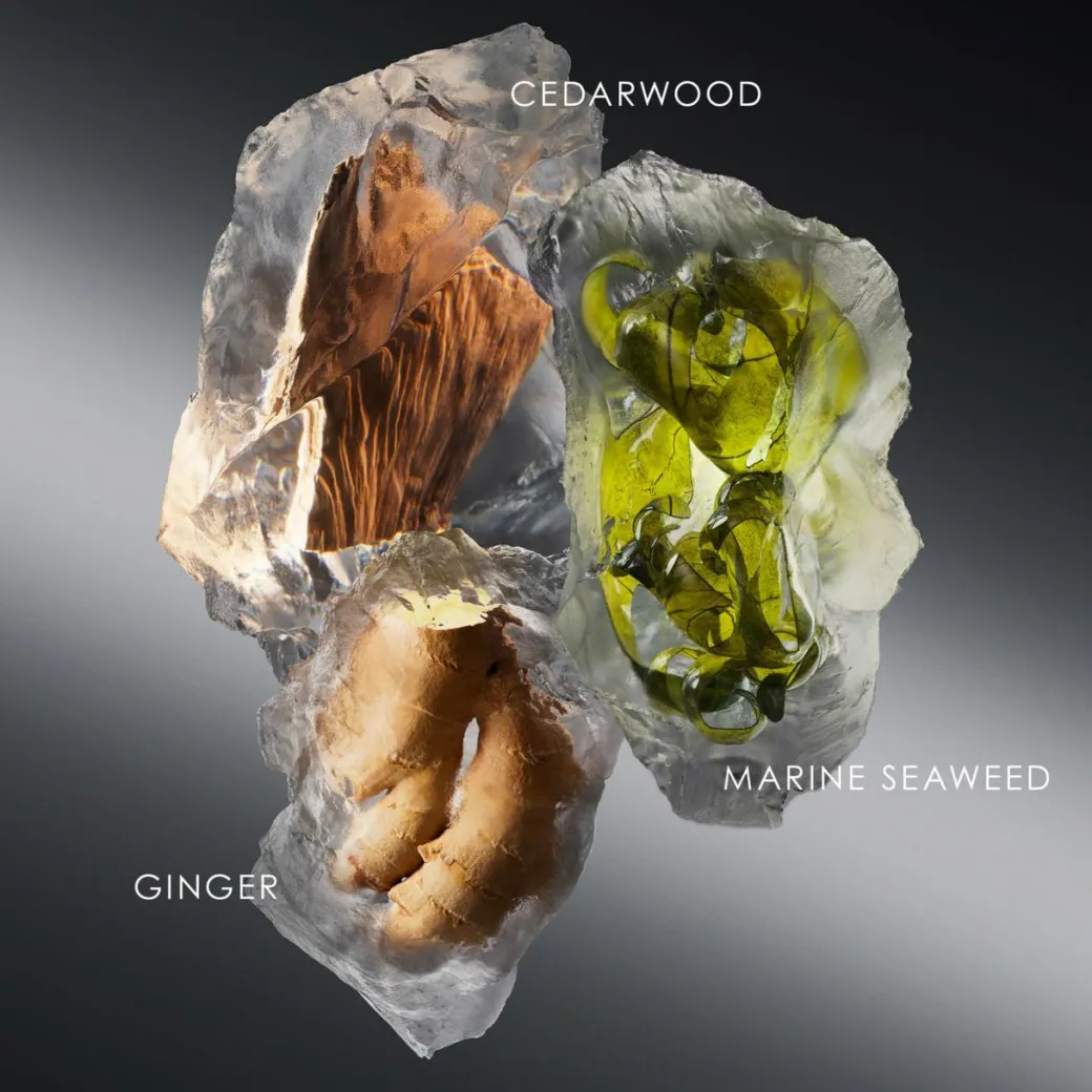 A true sensory awakening inspired by the powerful freshness of salt; a vibrant salt accord combining marine seaweed and oakmoss, enhanced by ginger and textured by intense woody notes of cedar and vetiver. An invigorating journey from the sea to the land. This woody marine fragrance is vegan-certified and made with 95% natural origin ingredients.