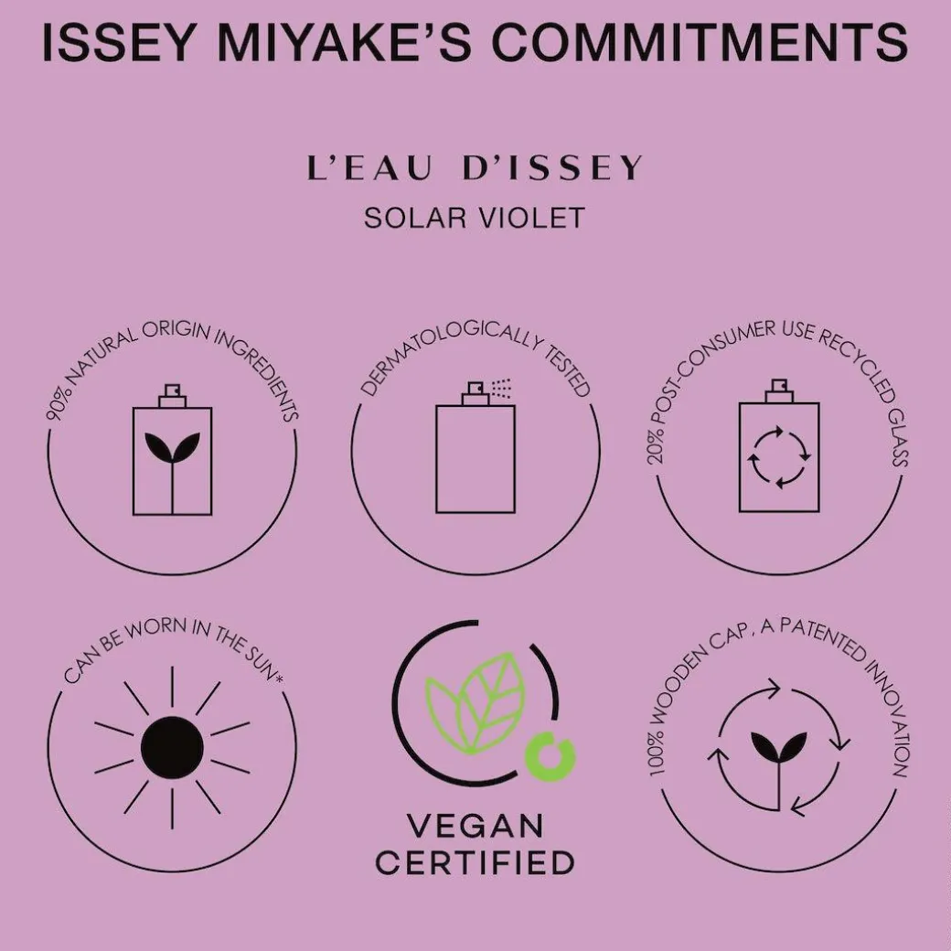 A celebration of nature, this vegan-certified perfume is made with 90% natural origin ingredients. The 100% natural origin violet in L’Eau d’Issey Solar Violet is sourced responsibly in Egypt.