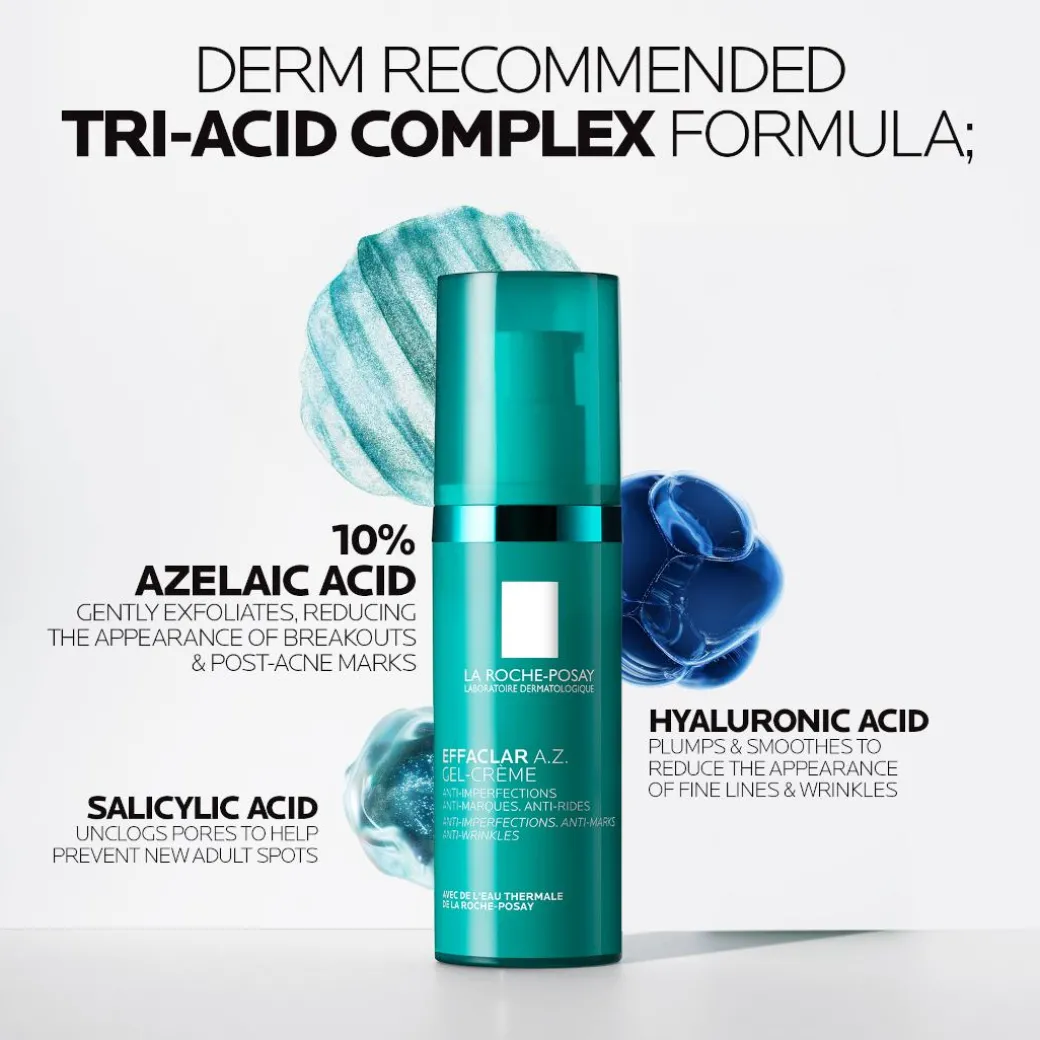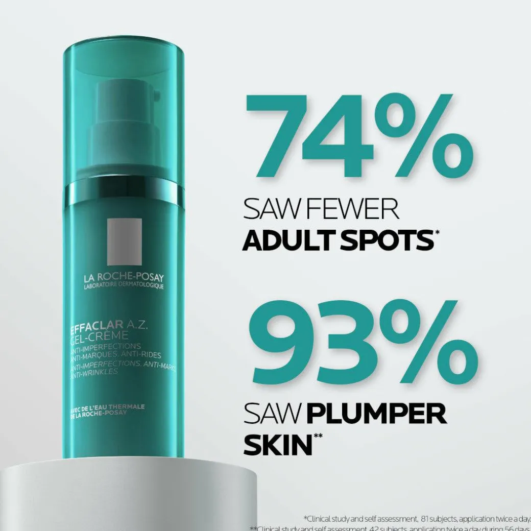 Correct recurring imperfections in 7 days and aging signs using La Roche-Posay Effaclar A.Z. Gel-Cream: an anti-imperfections and anti-wrinkles daily moisturizer that corrects adult skin imperfections in 1 week.